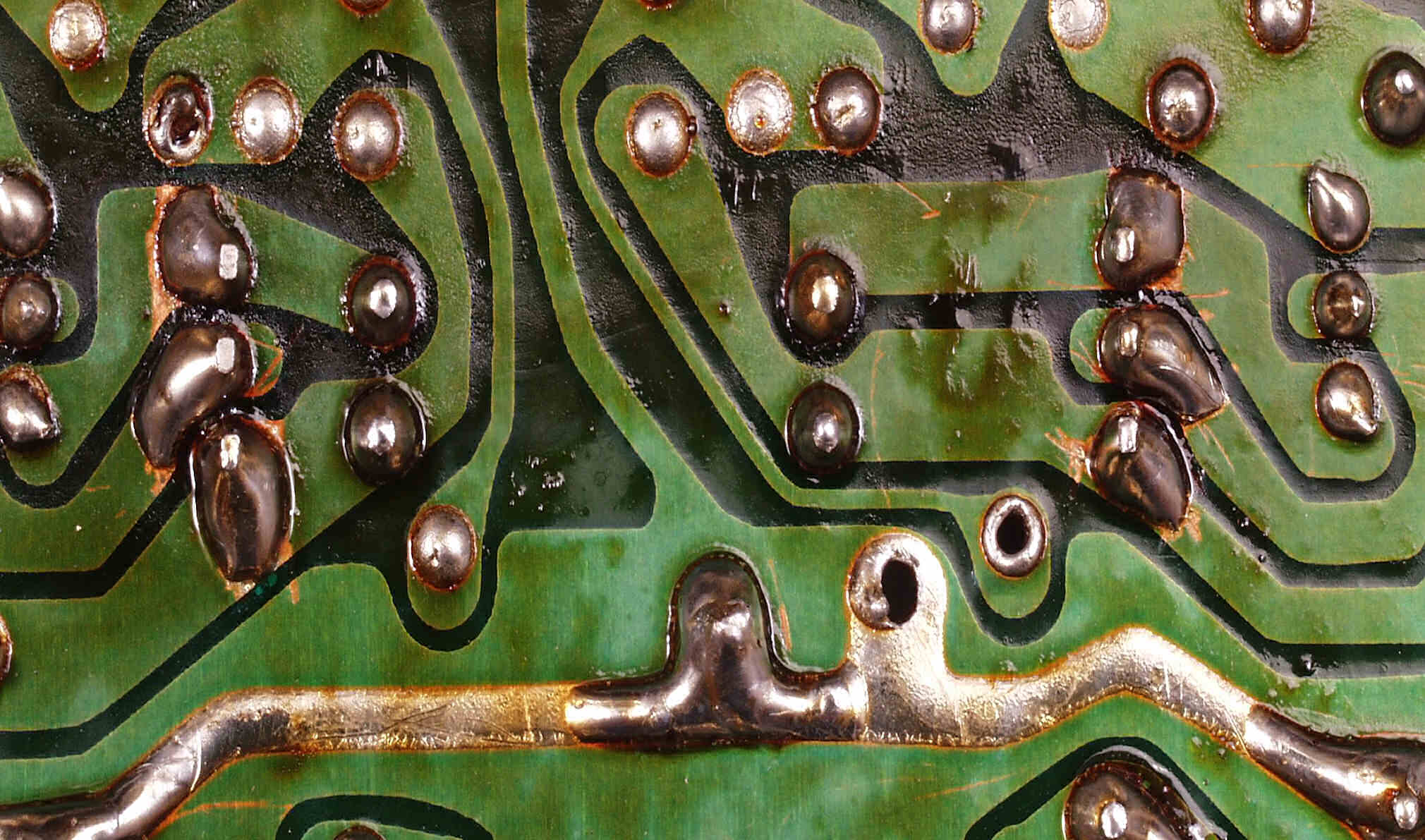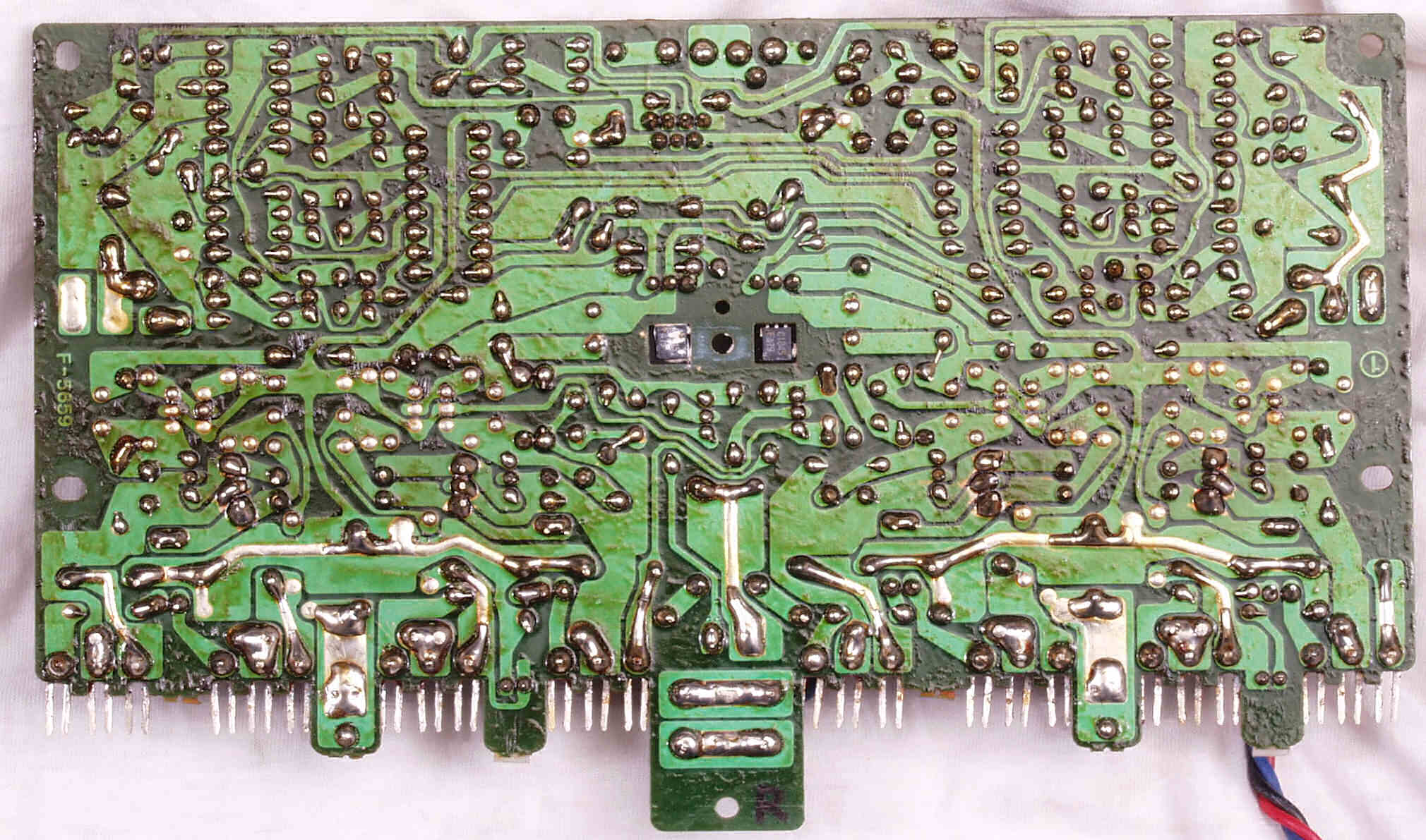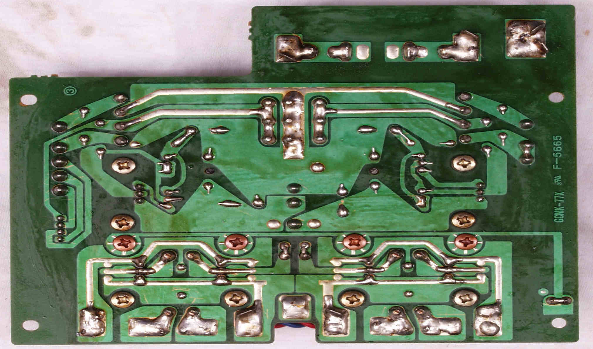 CE6. 修理(半田補正)後 R側終段基板裏  全ての半田をやり修す