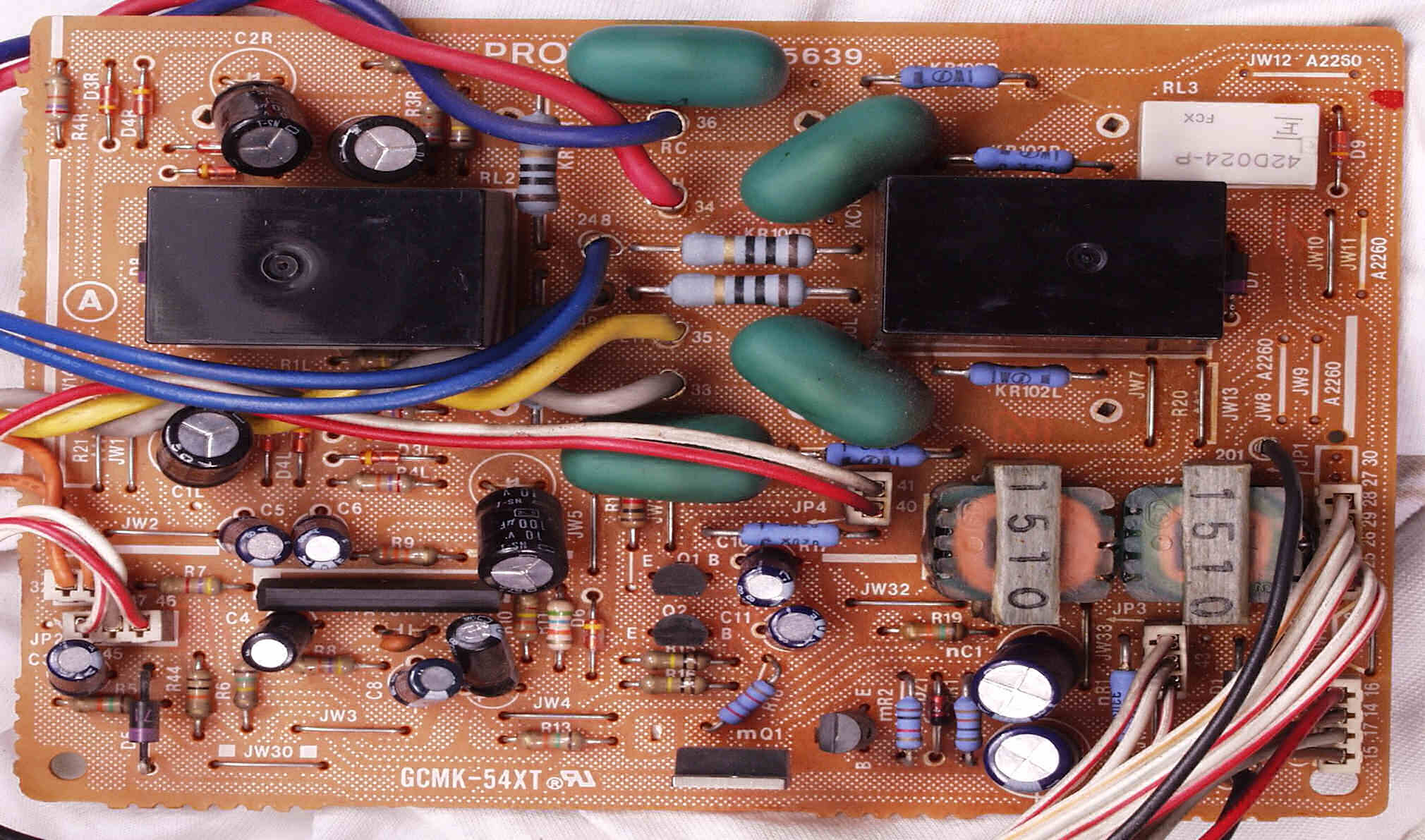 CG2. 修理後 電源基板 電解コンデンサ−4個交換