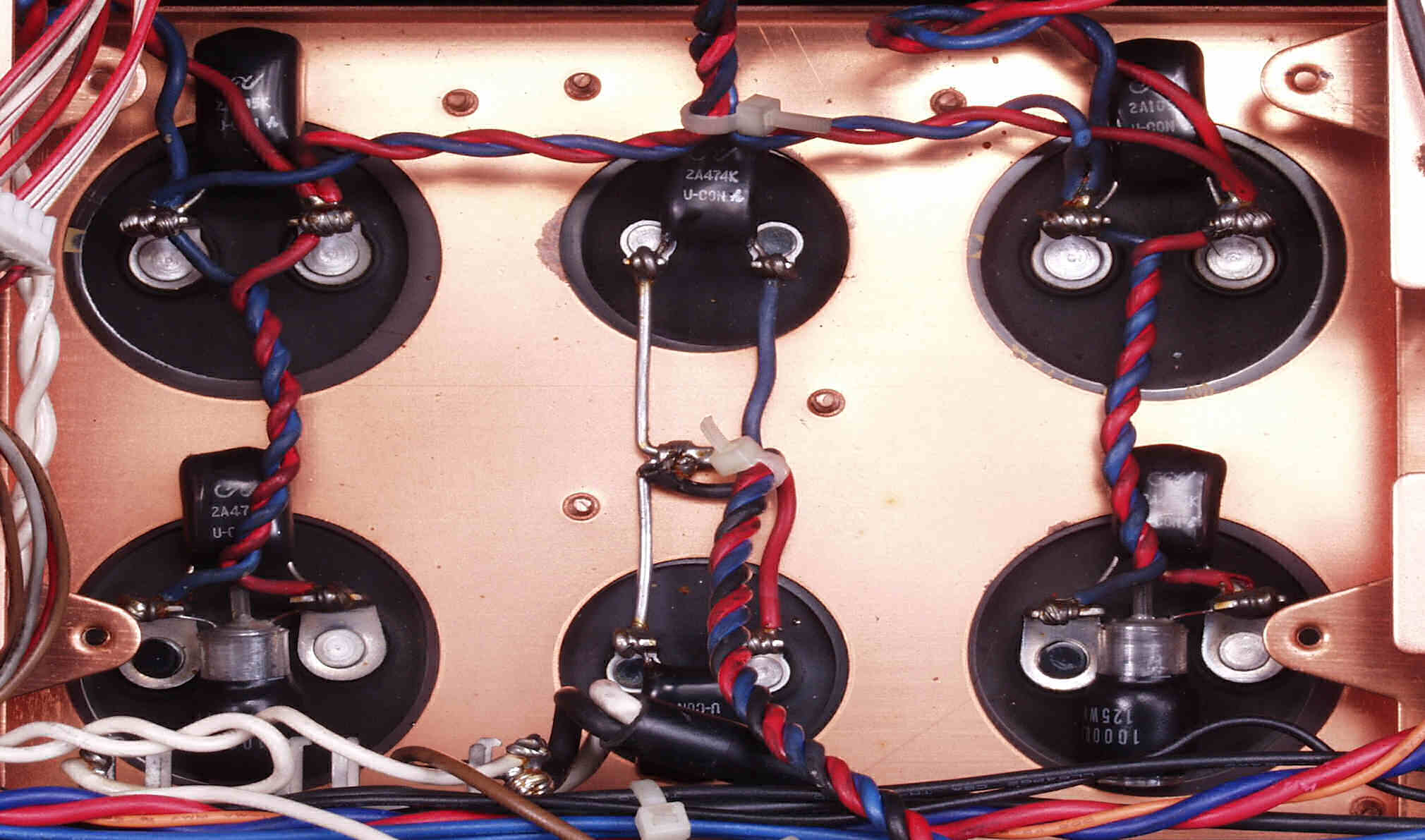 CE34. 修理後 R・L側終段基板 ガラスチュウブを入れて固定する