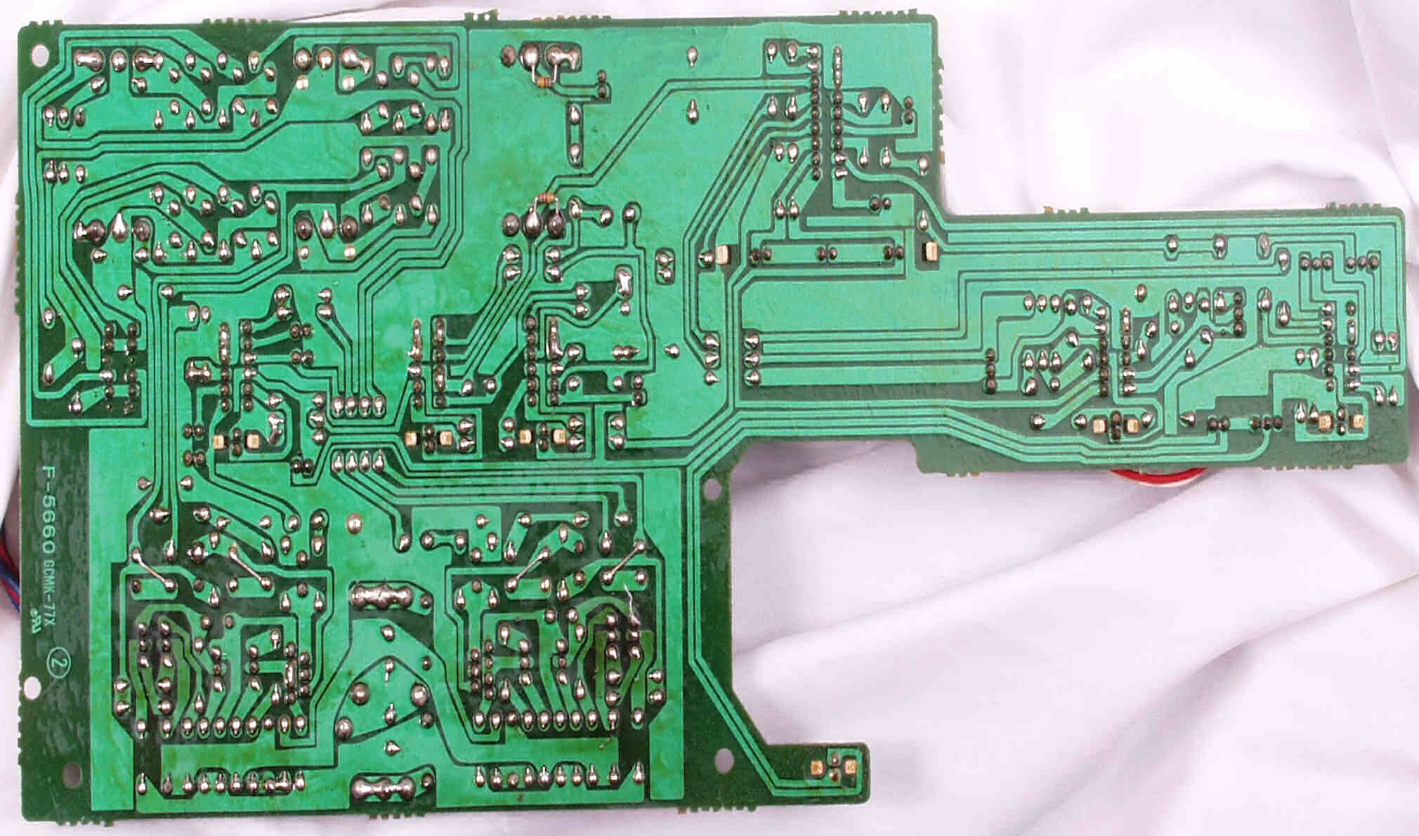 CE52. 修理中 R側終段基板裏 半田不良ヶ所2
