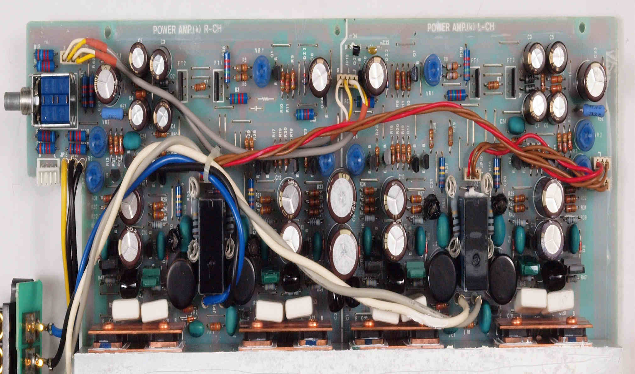 | C32. 修理後 AMP基板 リレー2個、FET(電界効果トランジスター)4個、電解コンデンサー22個交換。 | ||||||