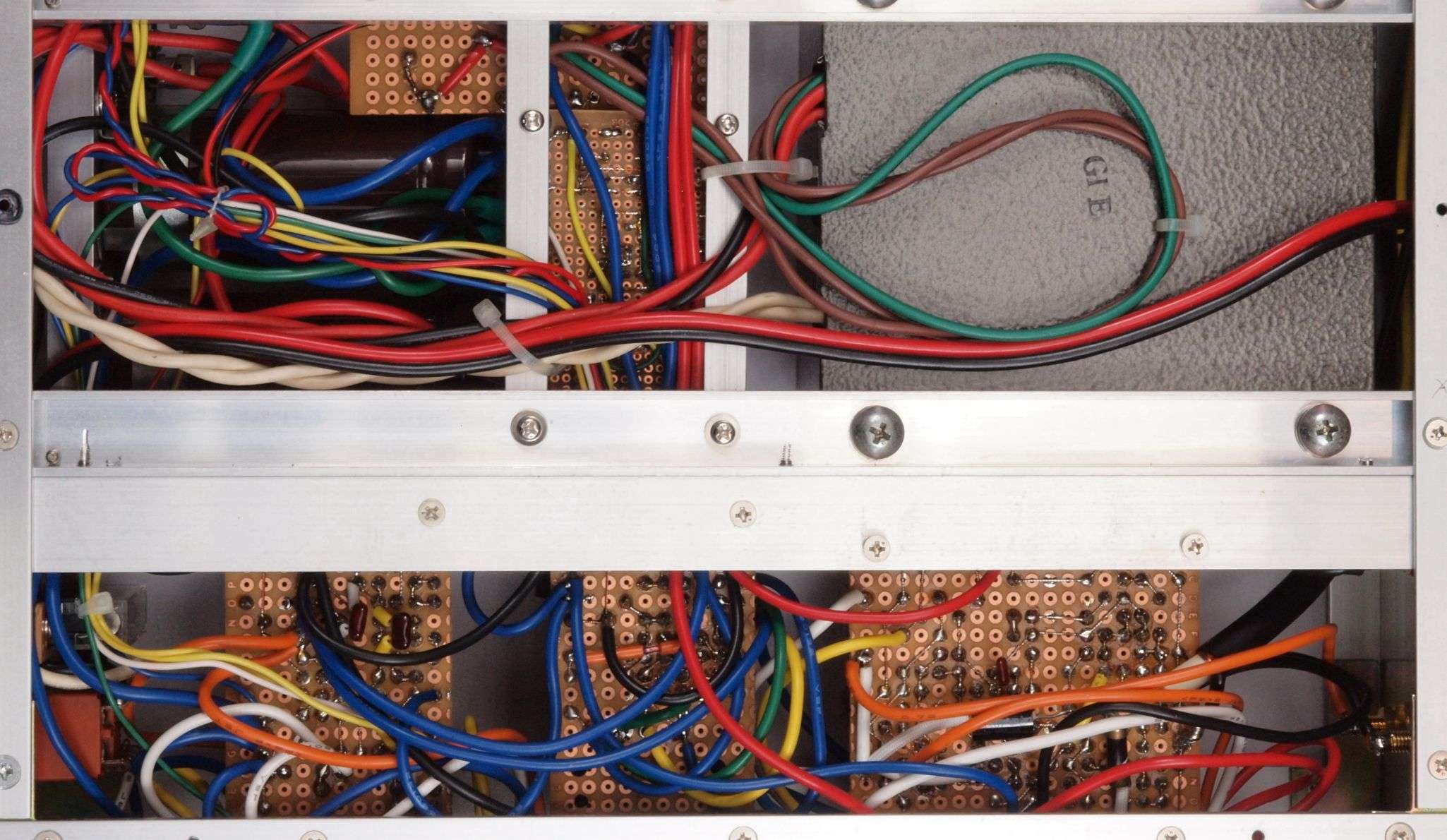 | A71. 点検中 配線のハンダ付け。 プロの絡げ配線とは異なる、又端子の裏側までハンダが載っていない。 |
