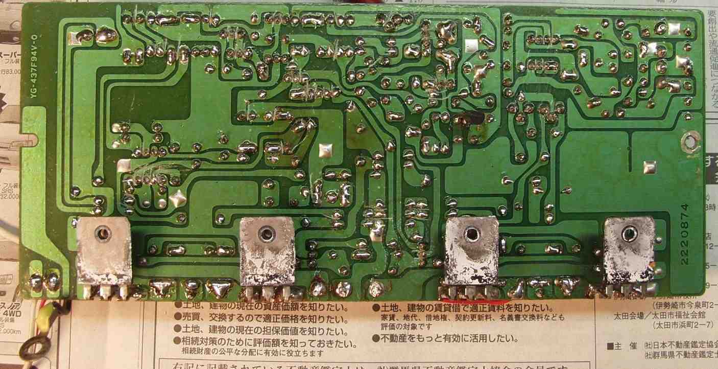 C20. 修理後 入力RCA端子基盤裏 半田補正