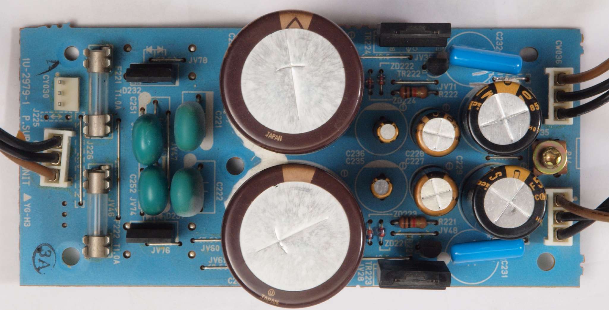 | CD1. 修理前 電源ブロック電解コンデンサー回り。 | ||||||||||||||||||||||||||||||||||||||