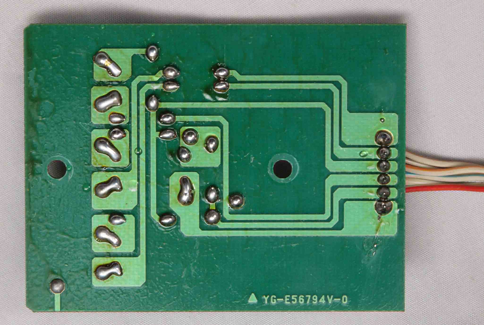 | C23. 修理(半田補正)後 DirectInput切替SW基板裏。 半田を全部やり直す。 | ||||||||||||||||||||||||||||||||||||||||||||||
