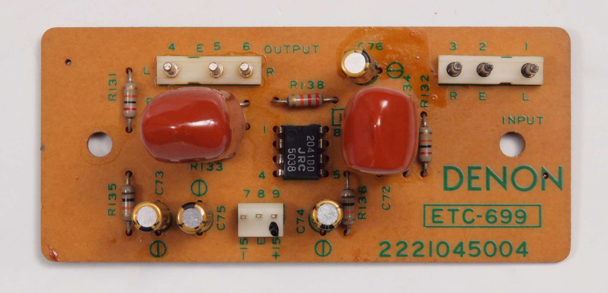 | C11. 修理前 EQ−HEAD-AMP基板。 左=MM、中=MC、右=トランス使用MC。 上右端がMC−トランス。 | ||||||||||||||||||||||||||||||||||||||||||||||||||||||||