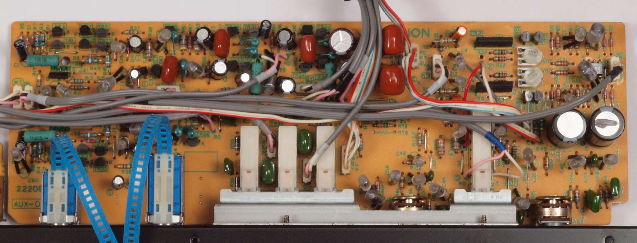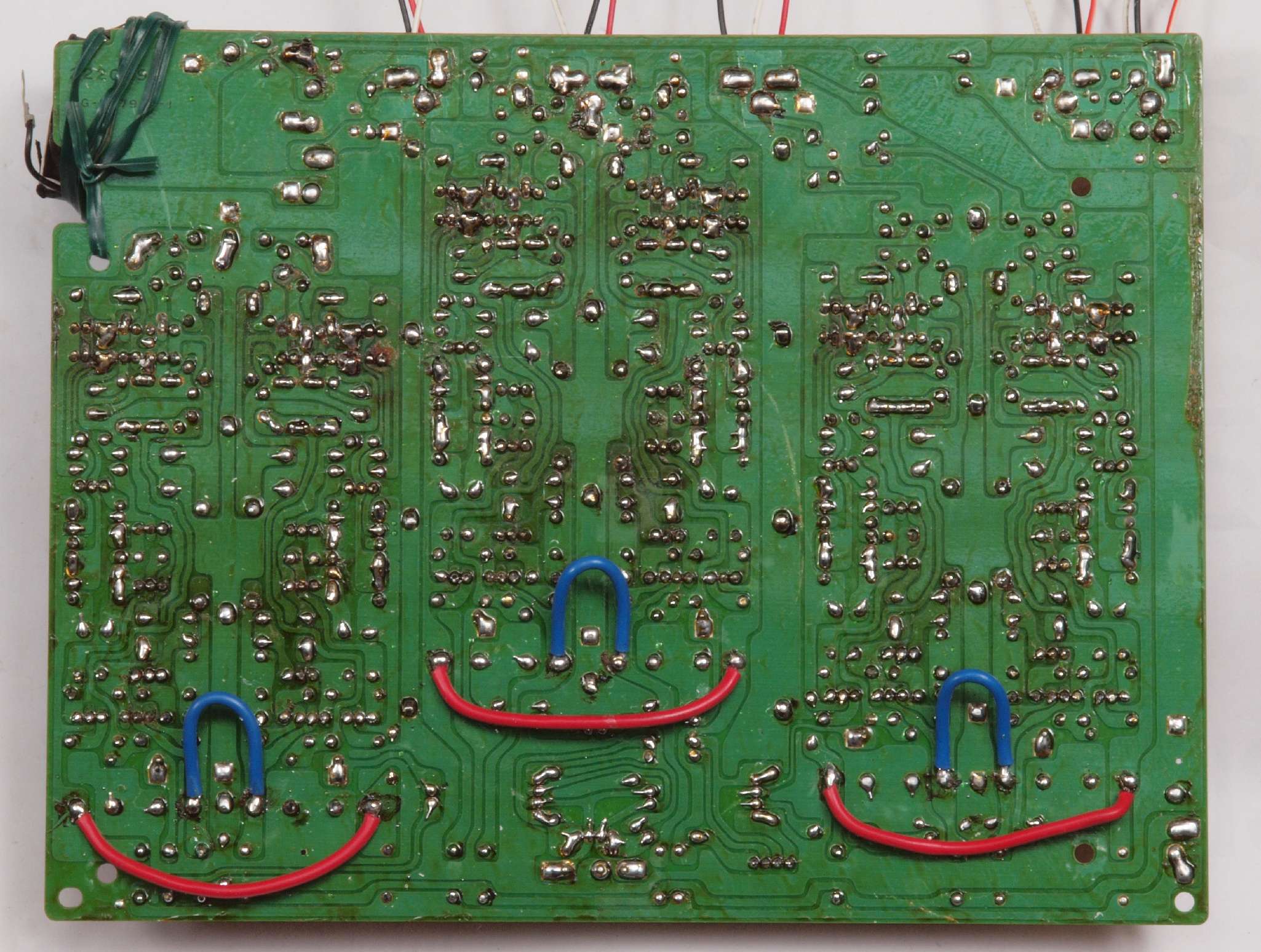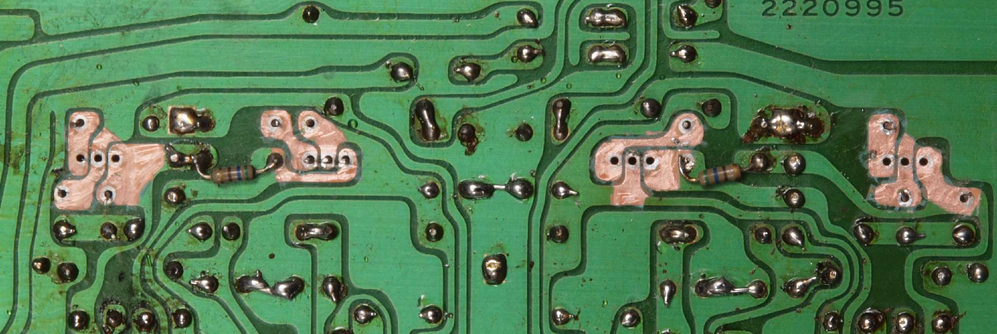 | C213. 修理中 EQ−AMP。 トルエン溶媒の接着剤を取り去り、ジャンパー線を交換後、コート液を塗布後。 | ||||||||||||||||||||||||||||||||||||||||||||||||||||