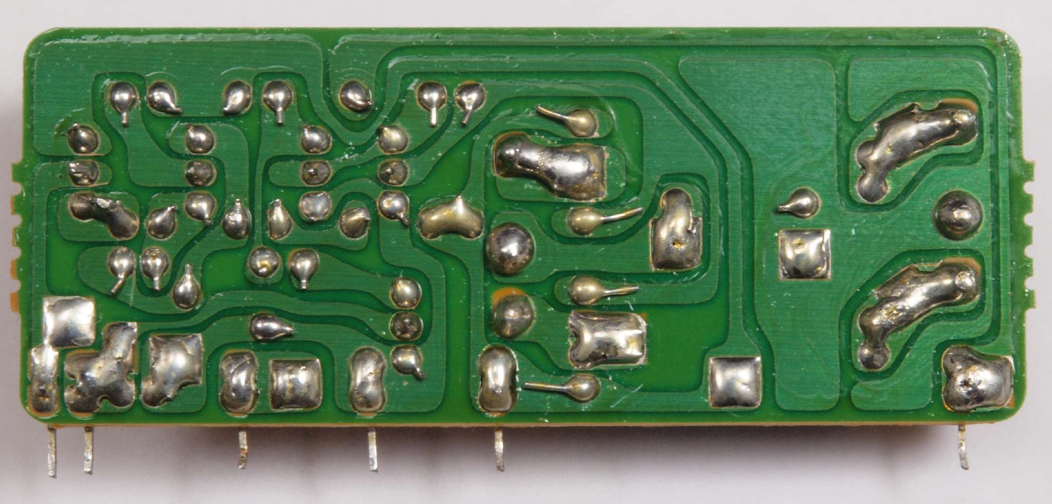 | C35. 完成電源・コントロール基板裏。 余分なフラックスを落として、コート液を塗る。 | ||||||||||||||||||||||||||||||||||||||||||||||||||||