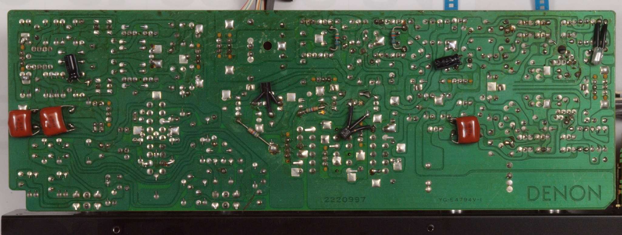 | C23. 修理前 EQ−AMP基板裏。 RCA端子が半田補正してある。 | ||||||||||||||||||||||||||||||||||||||||||||||||||||