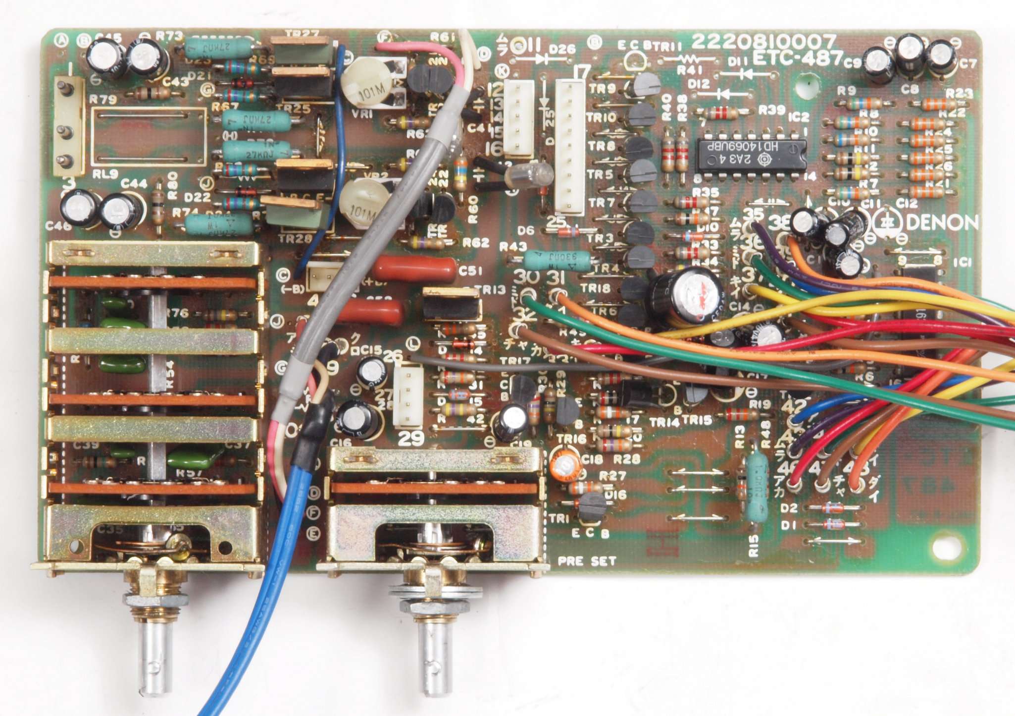 | C23. 修理後 EQ−AMP基板。 半固定VR4個、電解コンデンサ−42個、OP−AMP2個交換。 |