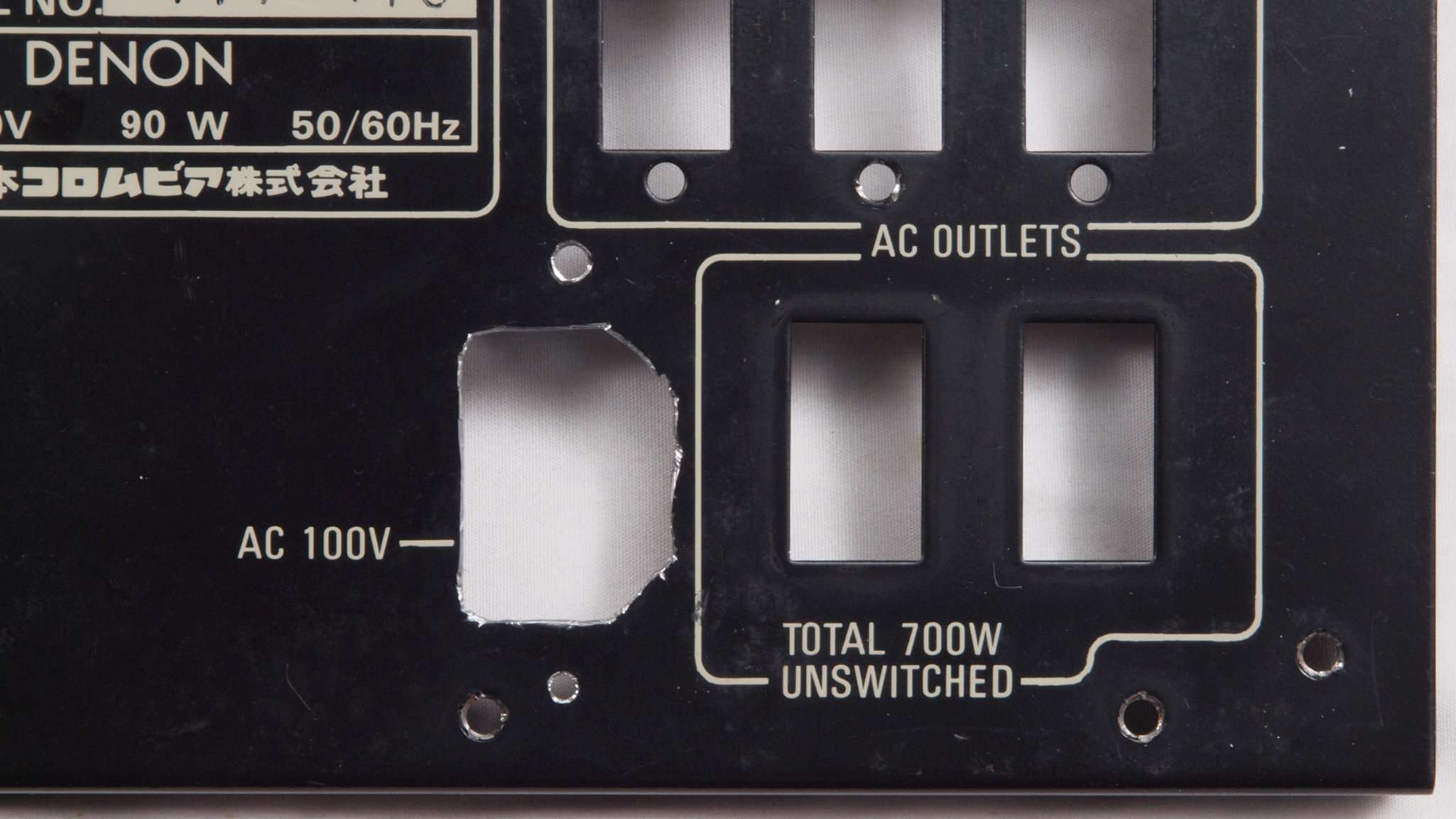 | A32. 点検中 電源ケーブル挿入部。 ケーブル挿入部裏にシャシがあるので、少しズレるが、3Pインレに交換。FURUTECH FI-10(R) ロジウムメッキ使用。 | ||||||||||||||||||||||||||||||||||||||||||||||||||||||||||||||||||||||||