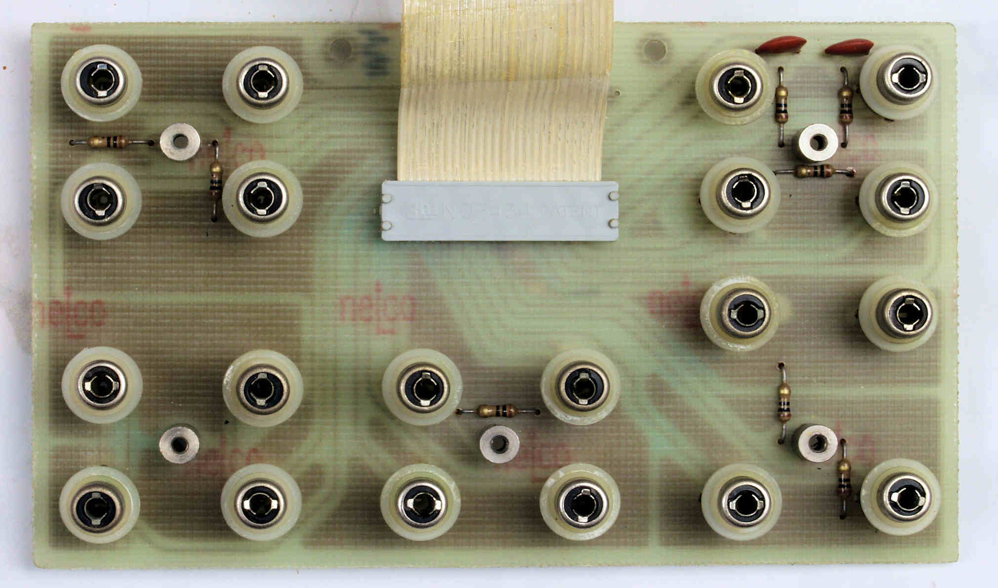 | C72. 交換したRCA端子、センターの電極が細く、現在の重く太いケーブルでは、折れてしまう。20個中5個がセンター極の端子破損! 下5個=センター極の端子破損品、上3個=正常品。 |