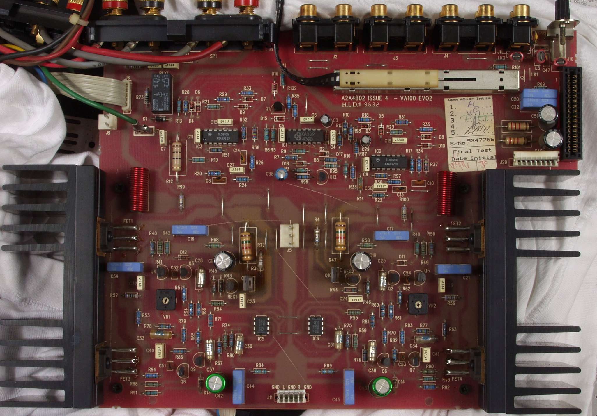 C2B2.修理前 AMP基盤 経年変化でバイアスが変化し抵抗が焼損した