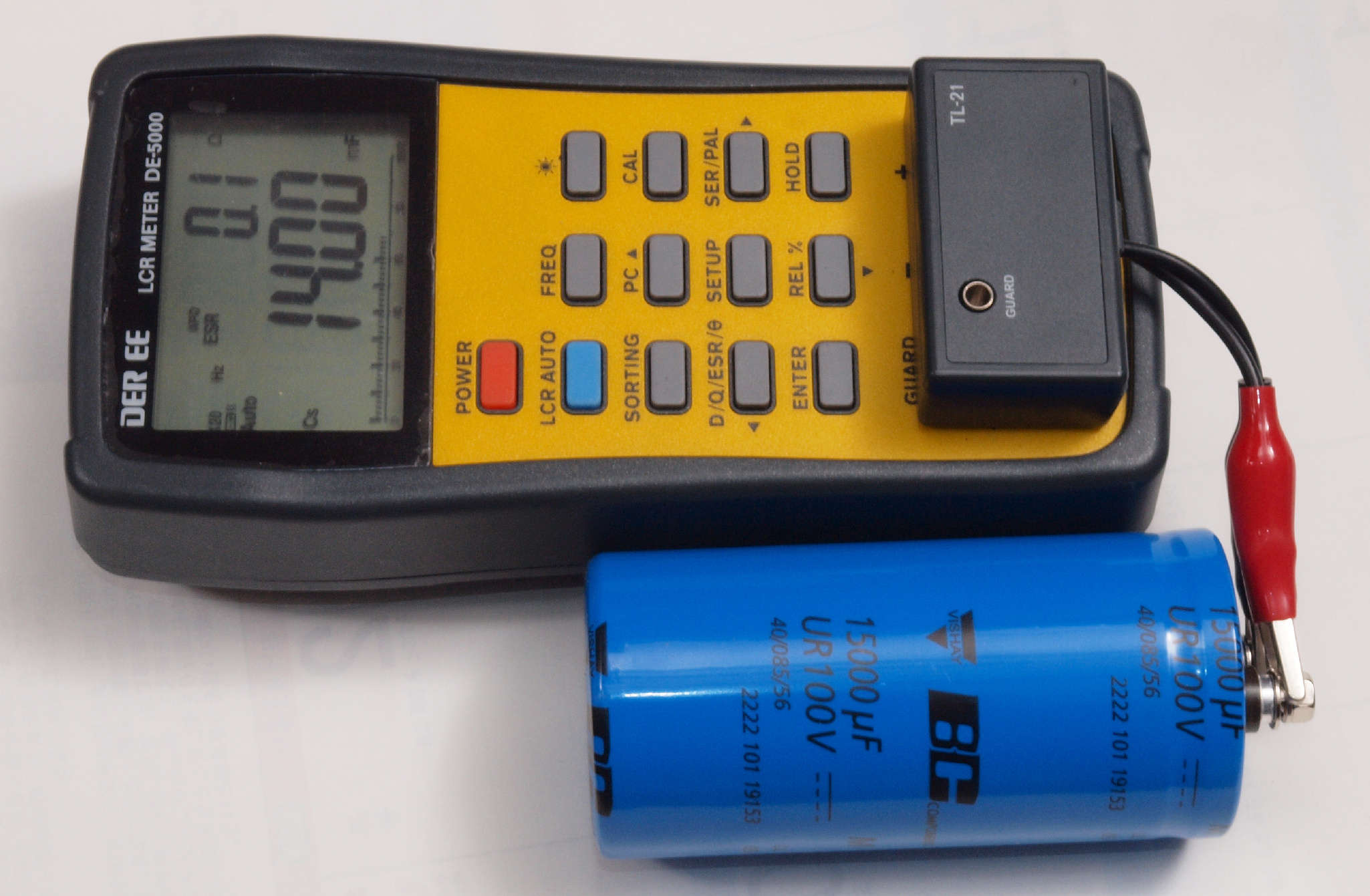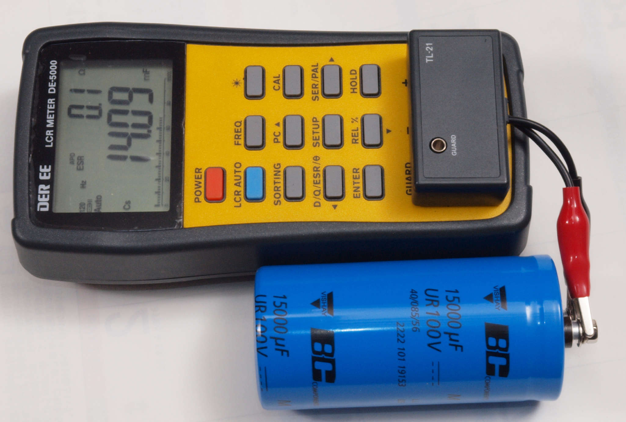 | A46. 点検中 在庫交換可能な電源ブロック電解コンデンサー測定=14000μF、ESR=0.1Ω。 ESRに付いてはmuRata、Nichicon、ルビコン、Panasonic、日本ケミコン(株)参照。 この測定でNGな物はダメですが、負荷試験方が正確です。 |
