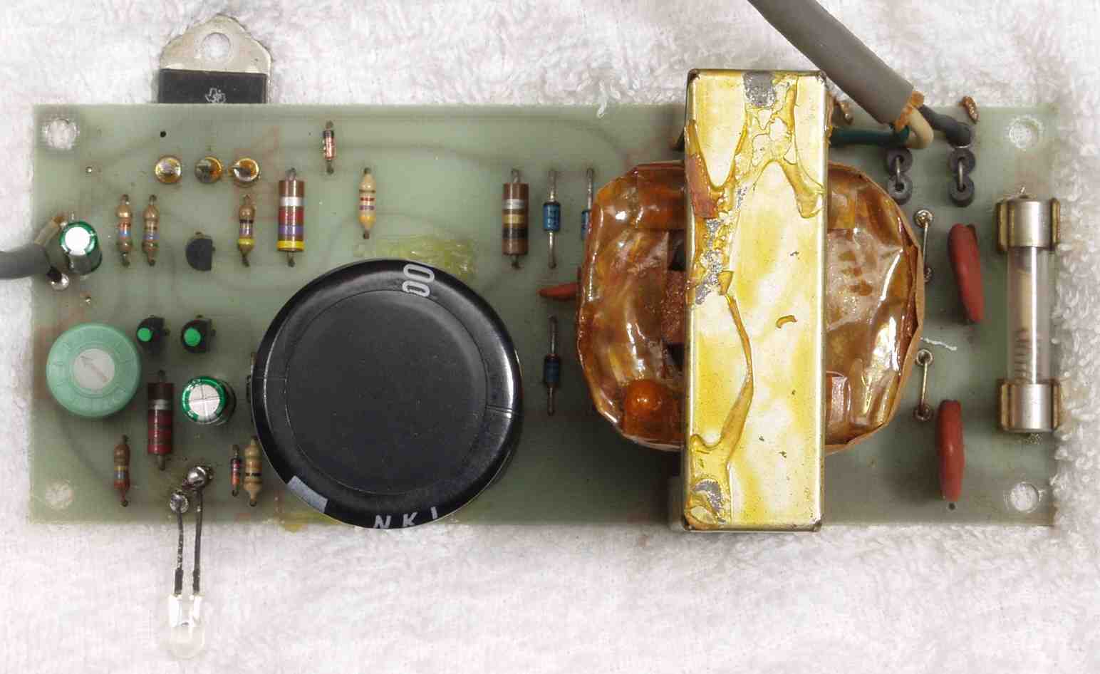 | C1B. 修理後 電源部基板 半固定VR、電解コンデンサー2個交換 |