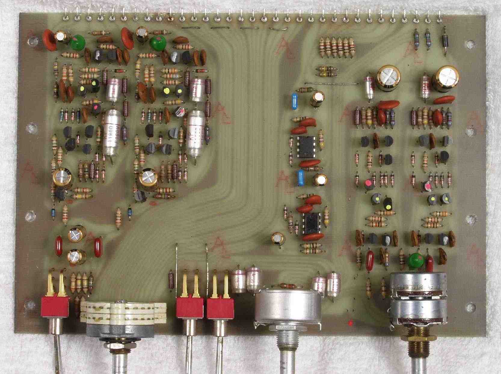 | C3B. 修理後 AMP基板 電解コンデンサー11個、フイルムコンデンサー6個、OP−AMP2個交換 |