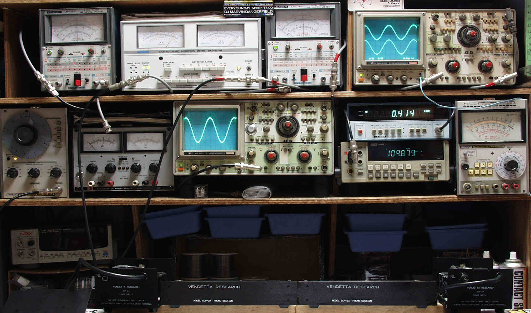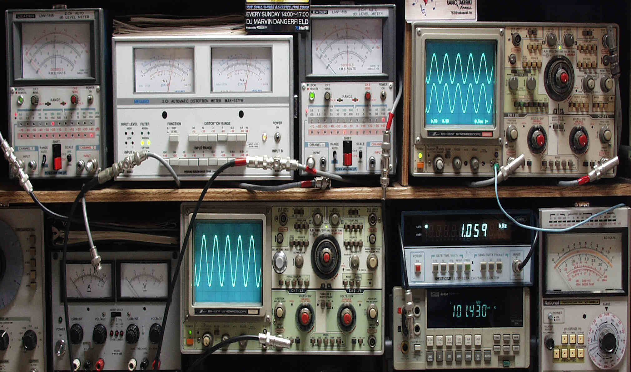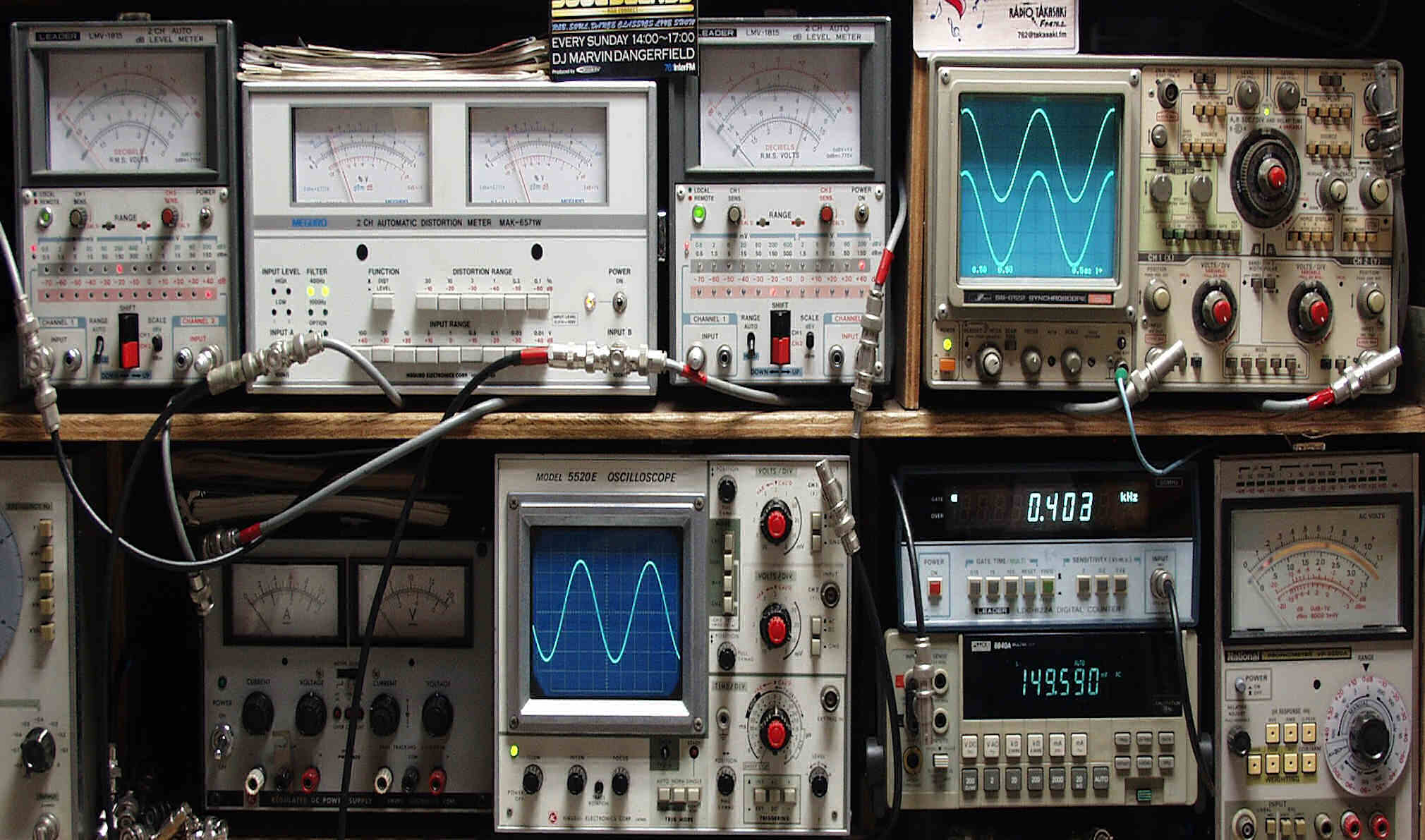 上段中左 歪み率計=出力の歪み率測定 左メータ=L出力、右メータ=R出力
