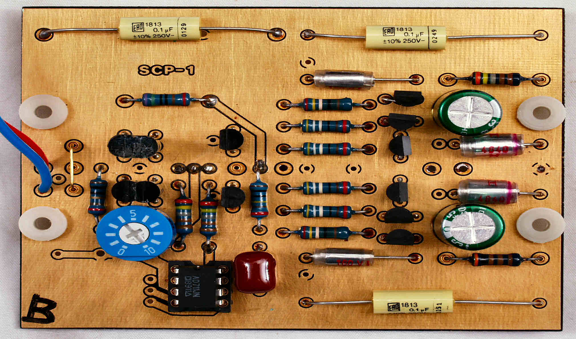 C3B. 修理後 EQ−AMP基板 電解コンデンサー2個、フイルムコンデンサー3個、OP−AMP交換