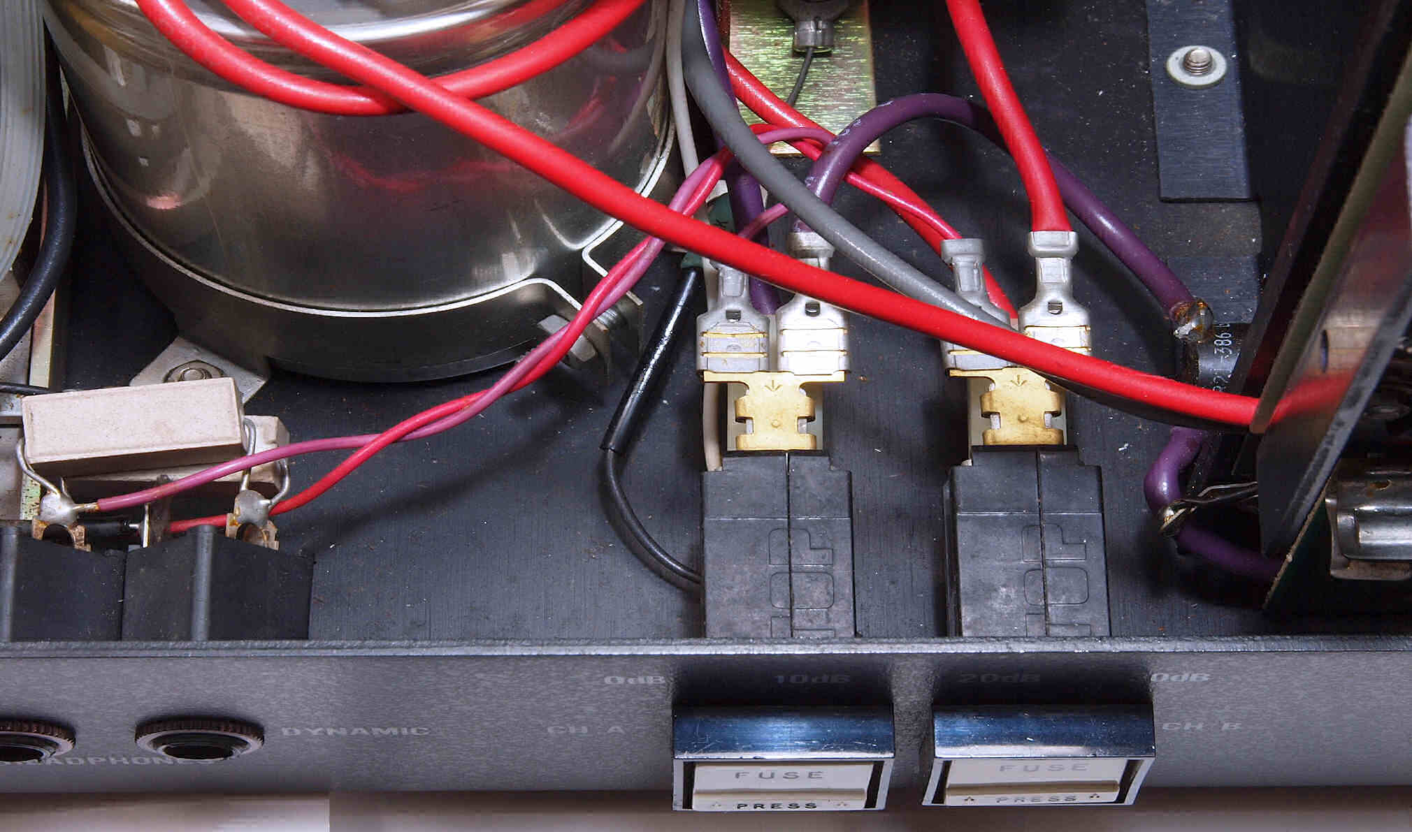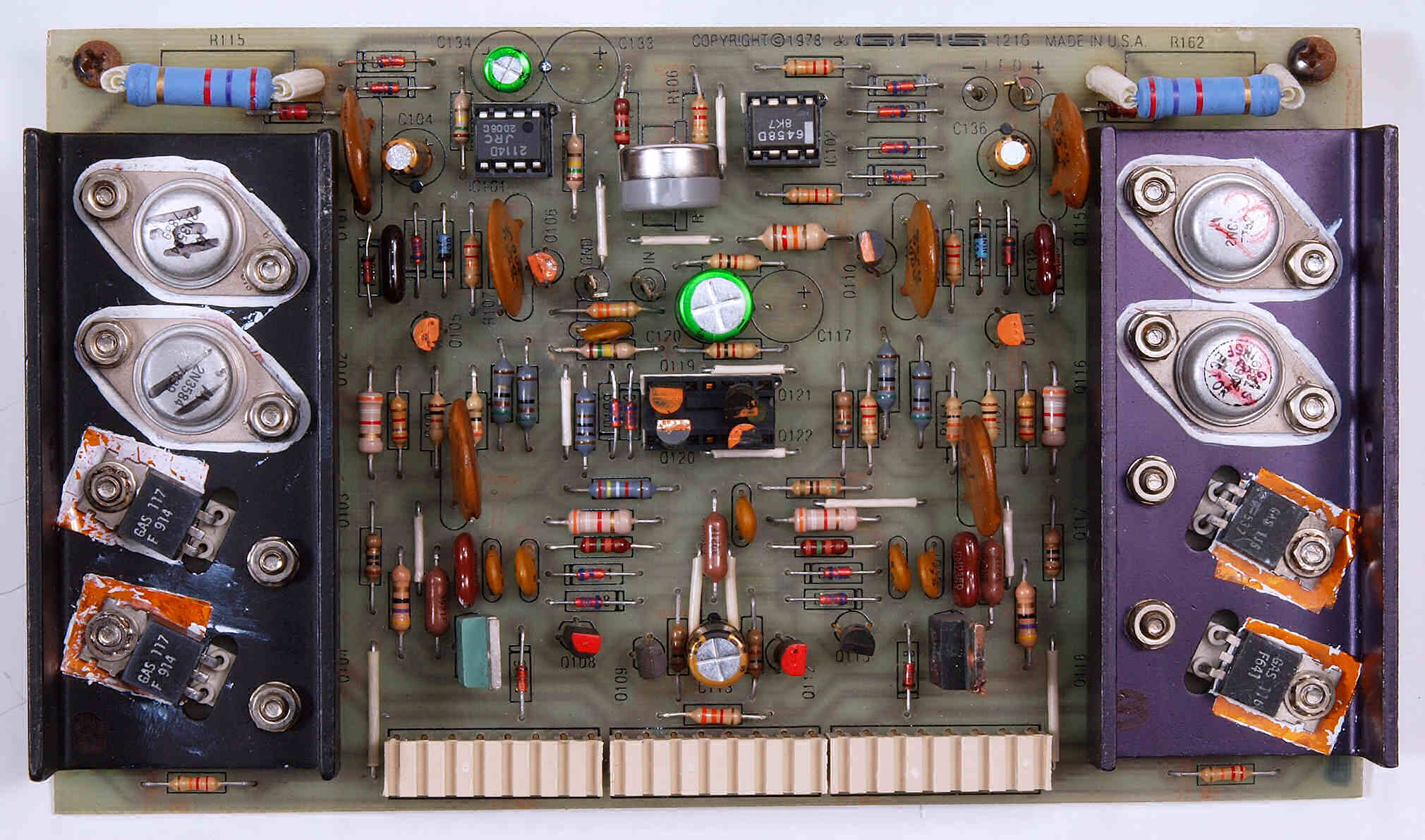 | A42. 点検中 B側−AMP基板。 コネクターが折られ、半田付けされた配線。 及び裏付けされた抵抗。 | ||||||||||||||||||||||||||||