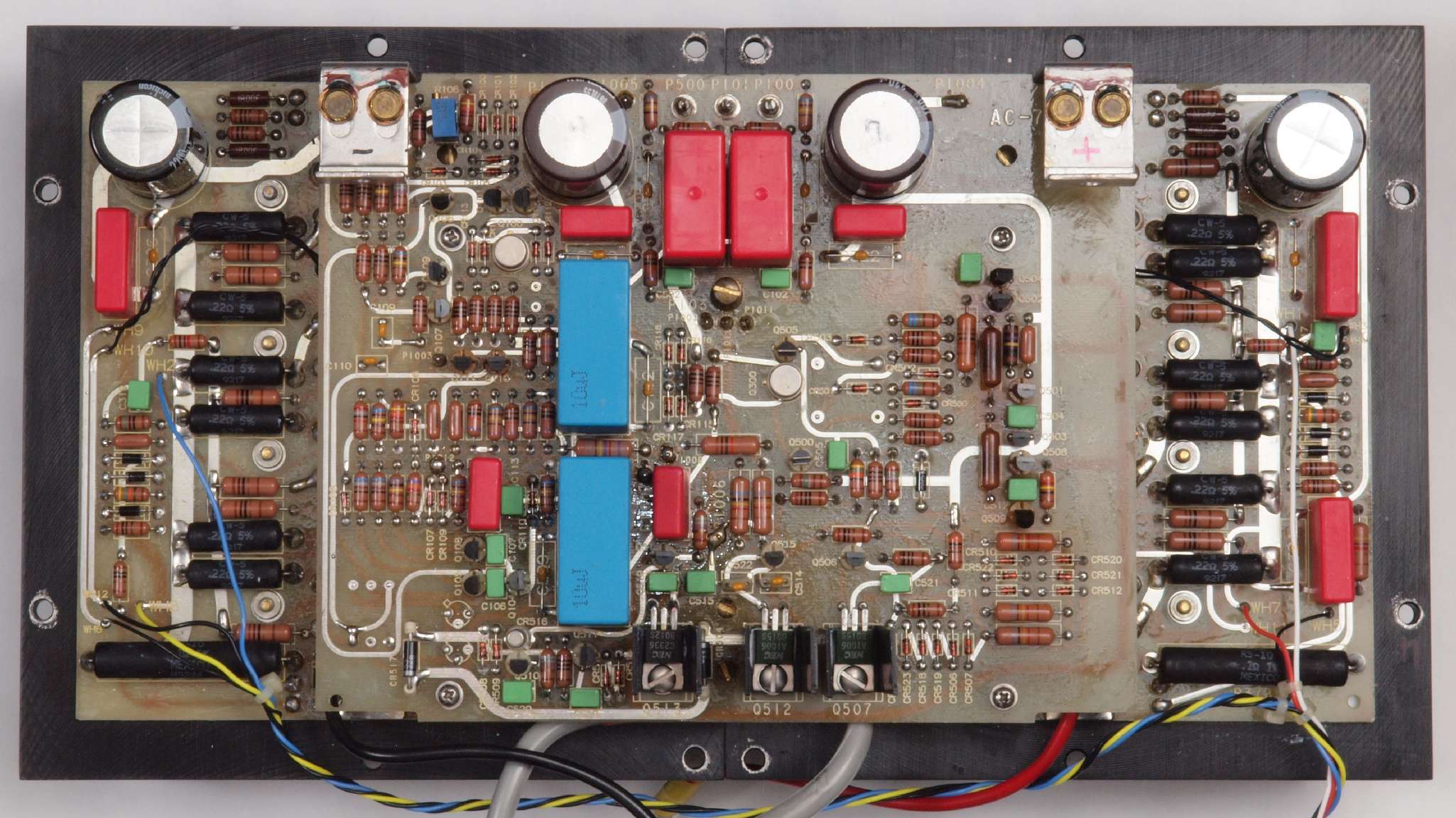 C76. 修理後 左側終段基板。 電解コンデンサー5個交換。