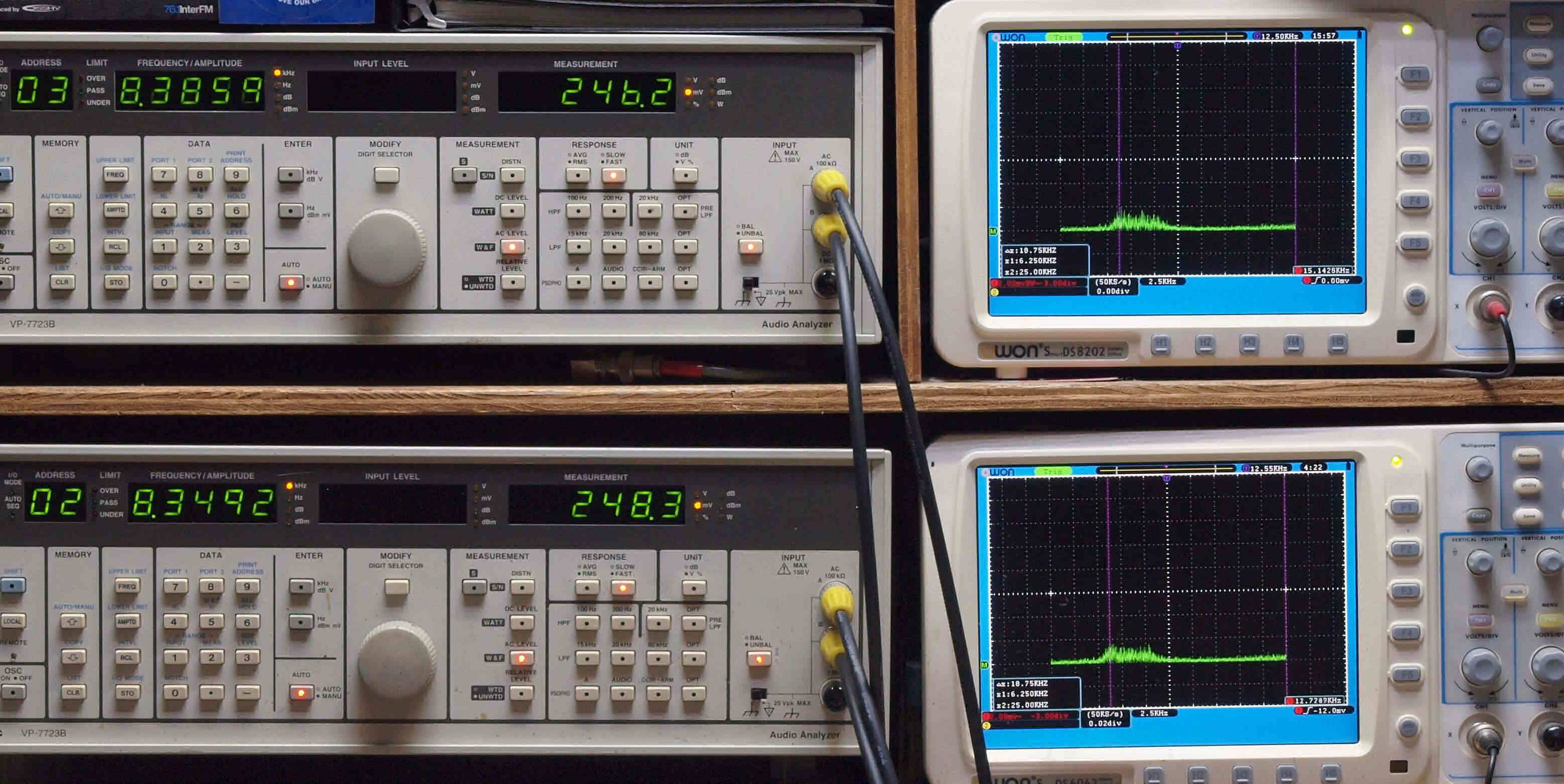 測定機器の仕様や整備の様子はこちら、「VP−7723B」「VP−7201A」。 FFT画面の見方はこちら。
