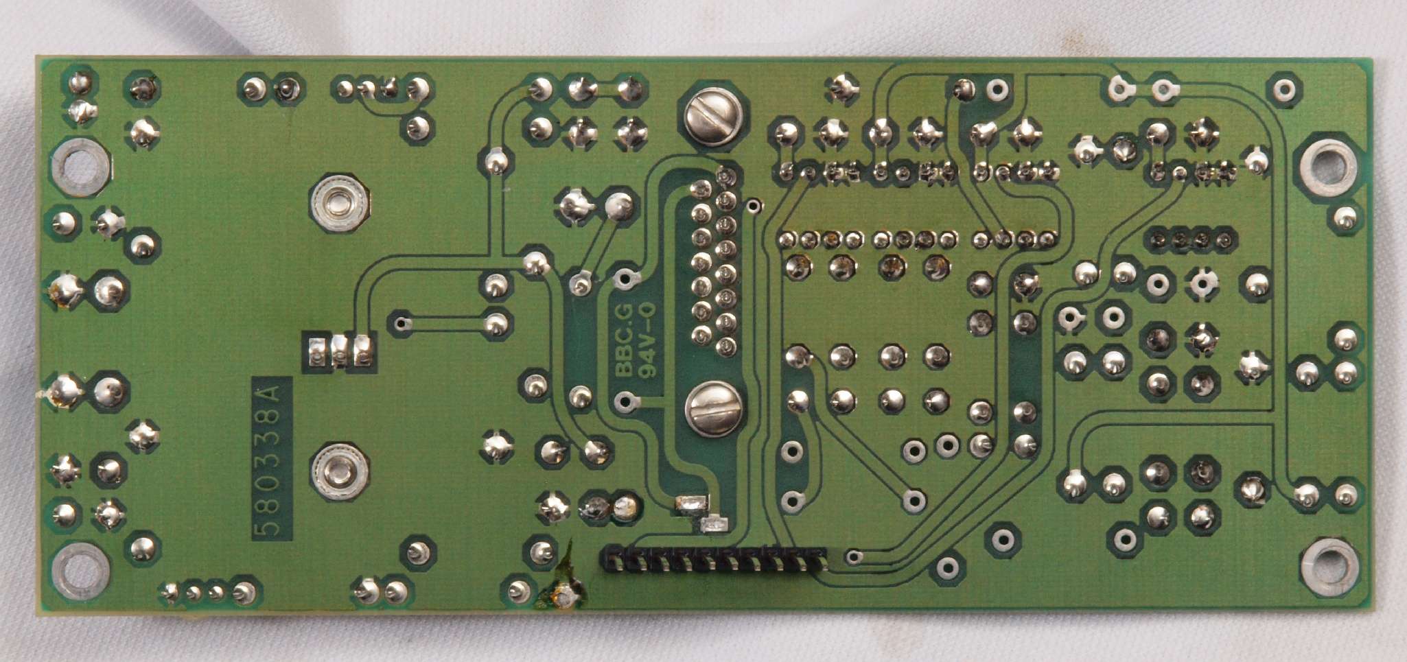 C2. 修理中 左側アナログAMP部。 白いリボンケーブル3本はテフロン絶縁銀線。