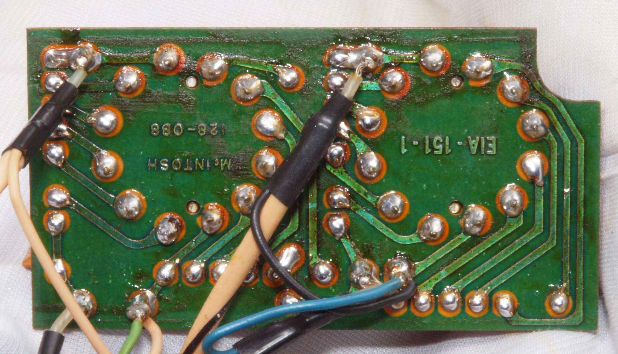 | C65. 修理(半田補正)後 TREBLコントロール基盤裏。 半田を全部やり直す。 | ||||||||||||||||||||||||||||||||||||||||||||||||||||||||||