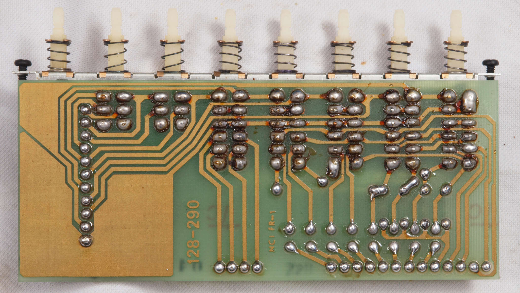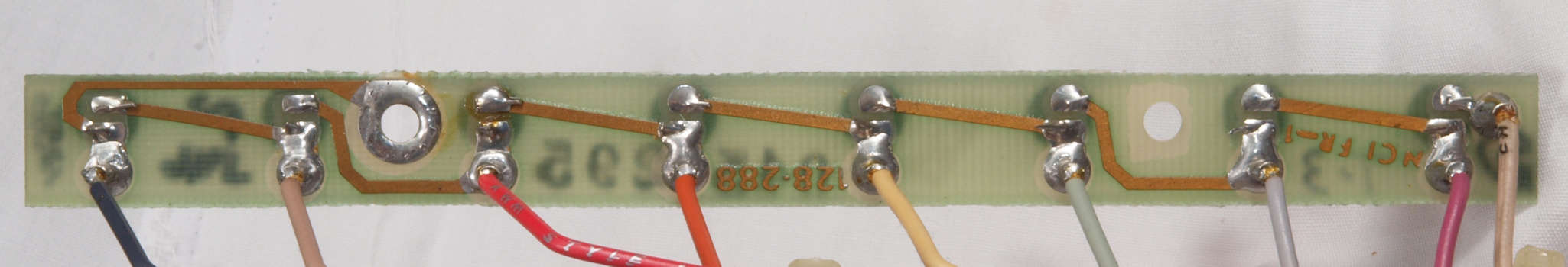 | C64. 修理修理(半田補正)後 TREBLコントロール基板裏。 半田を全部やり直す。 | ||||||||||||||||||||||||||||||||||||||||||||||||||