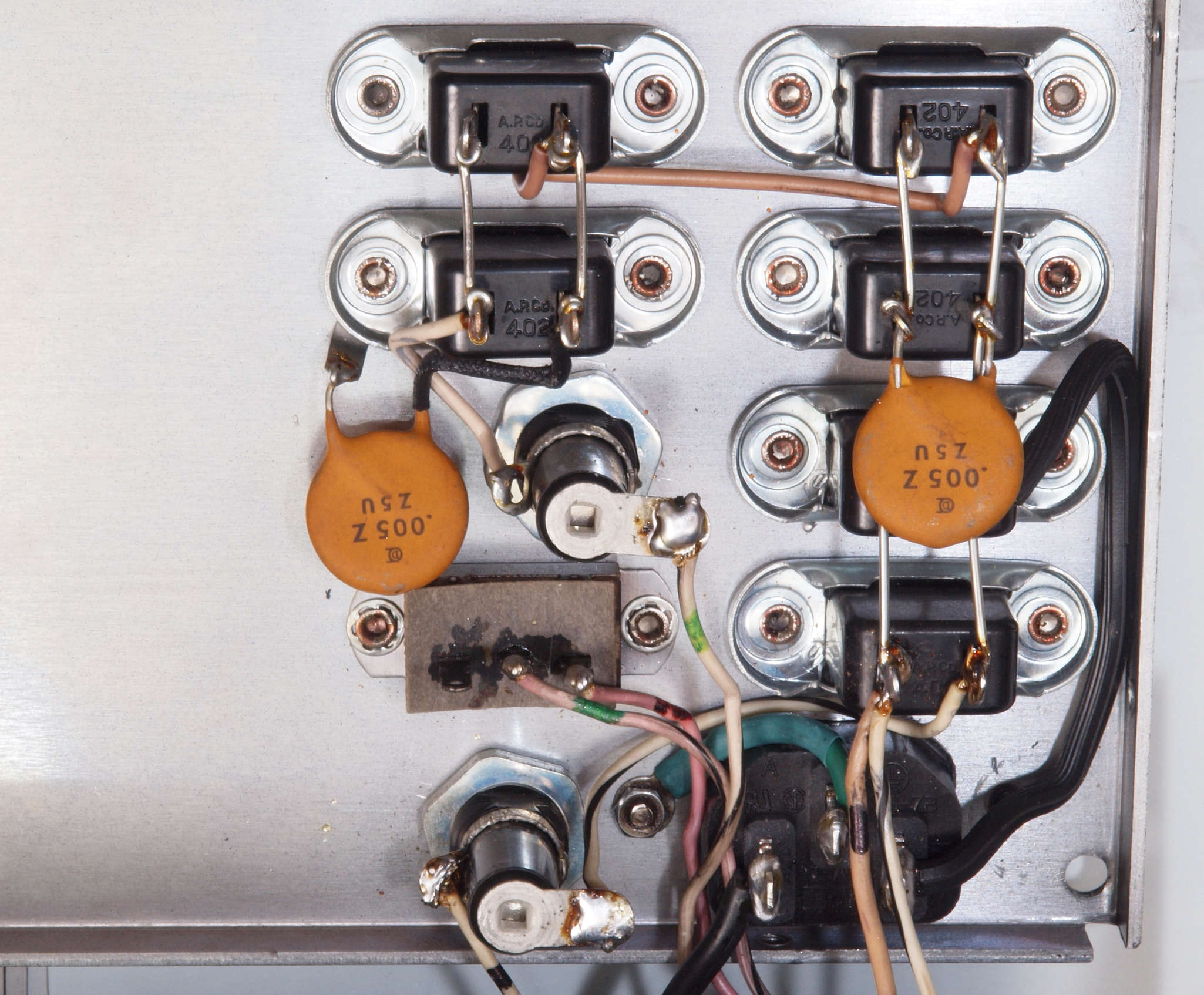 | A25. 点検中 イコライザーAMPの電解コンデンサー、頭が大分膨れている。 | ||||||||||||||||||||||||||||||||||||||||||||||||||