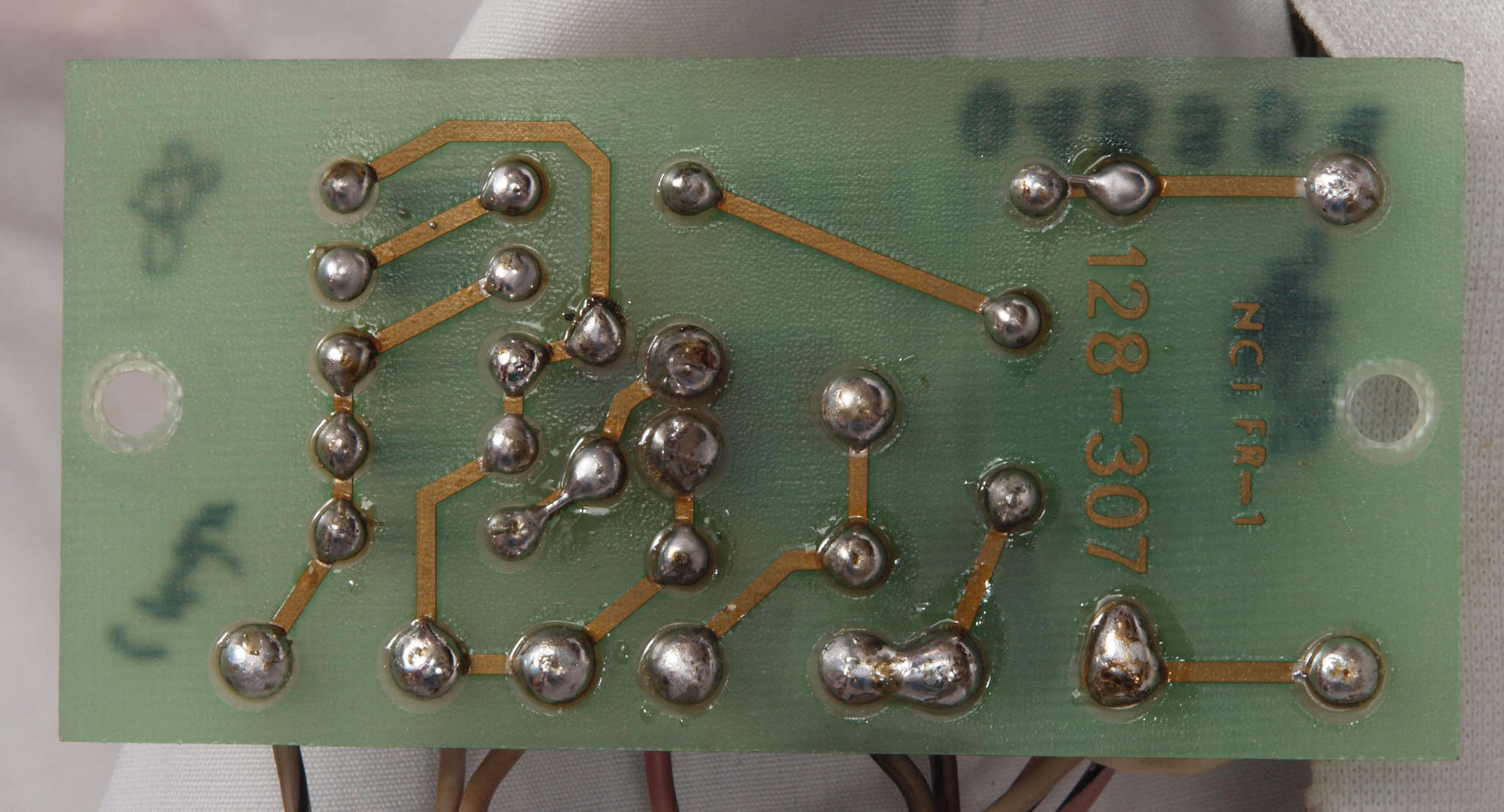 | CC4. 修理(半田補正)後 入力RAC端子裏、DCカットコンデンサー基板裏。 半田を全部やり直す。 | ||||||||||||||||||||||||||||||||||||||||||||||||||