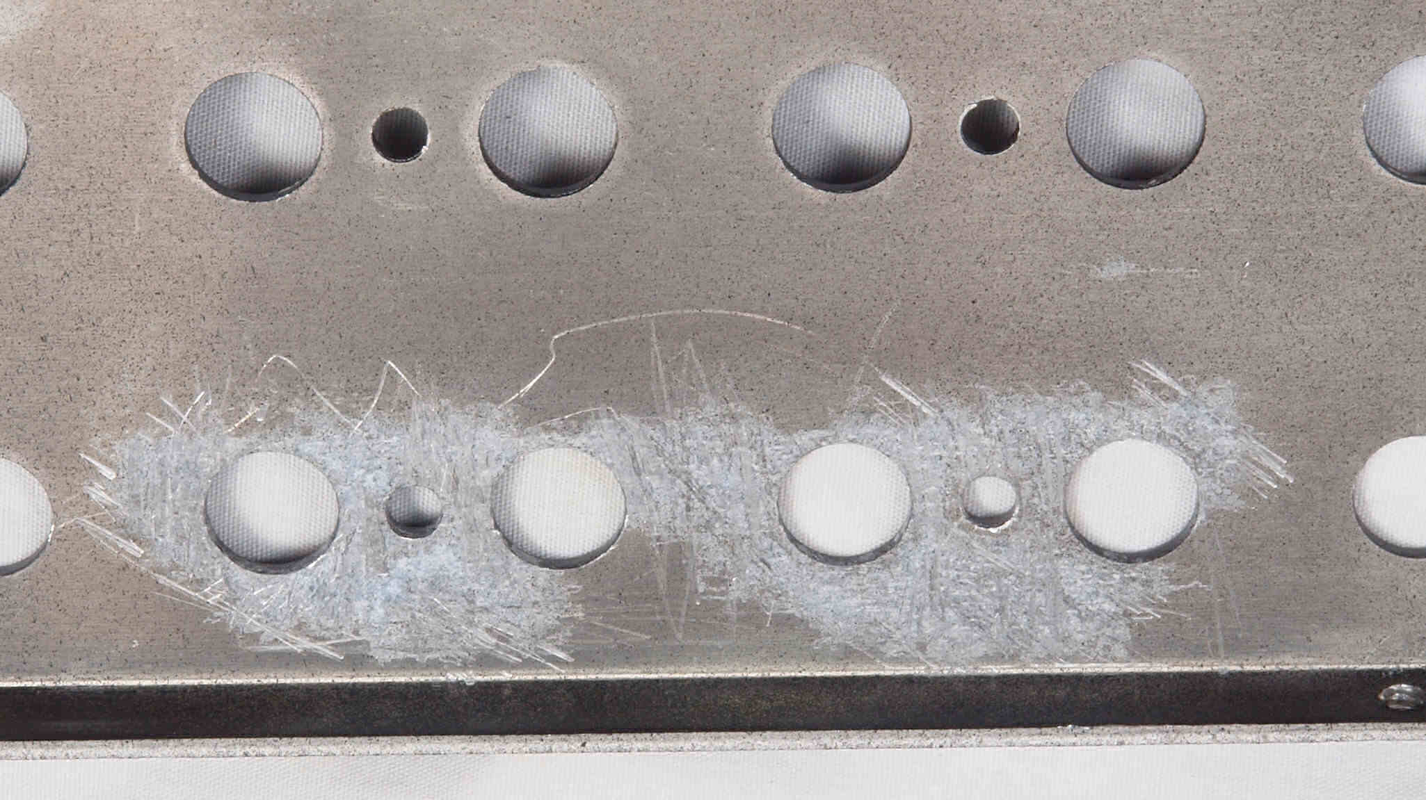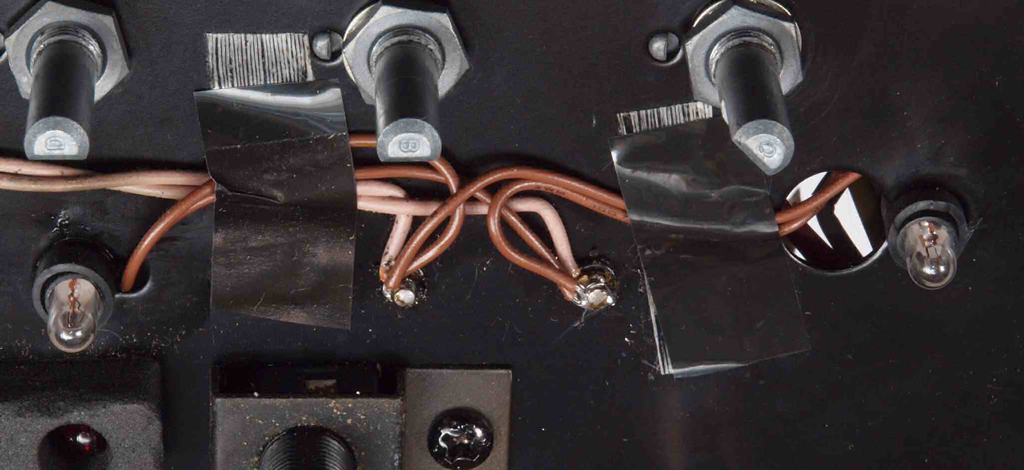 A43. 点検中 下蓋を取り、下から見る。接点復活材使用による電源SW下の焦げ付け?
