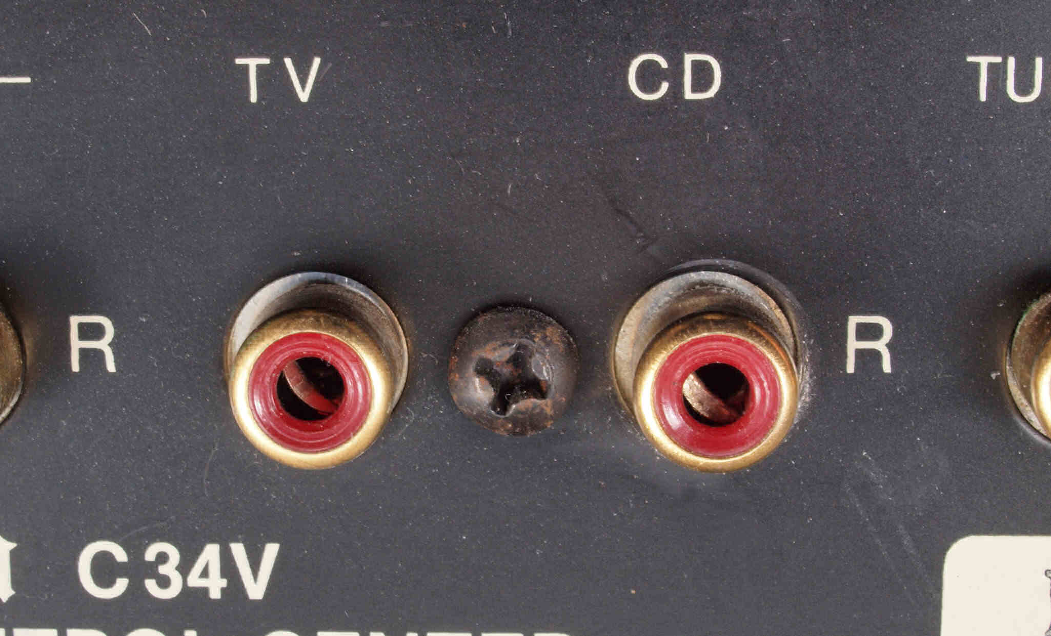 A14. 点検中 後から見る。 入力RCA端子、アース片があり、接触不良の原因になる事もある。