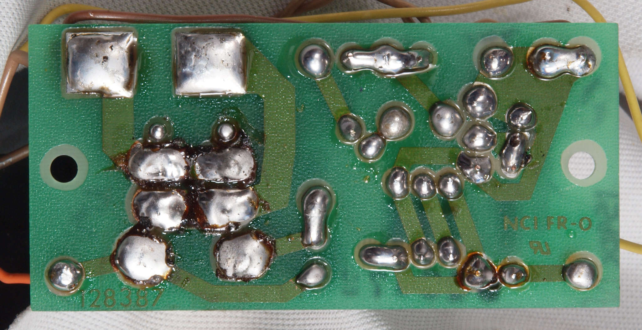 | CA1. 修理前 電源投入リレー基板。 | ||||||||||||||||||||||||||||||||||||||||||||||||