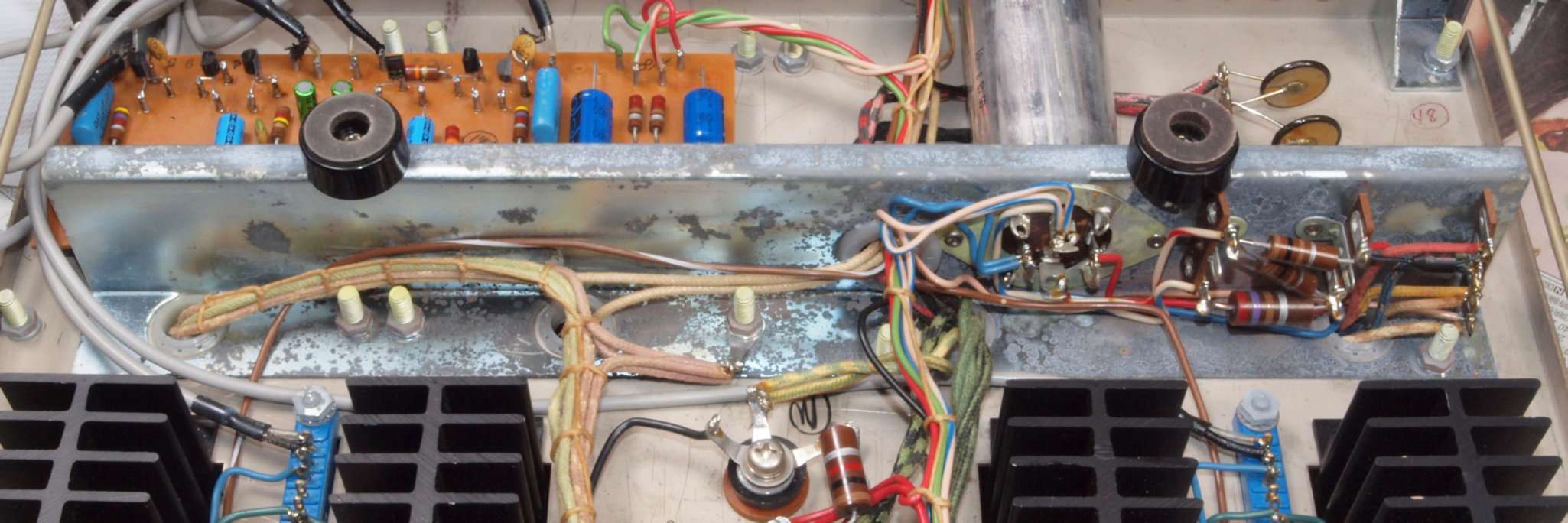 | A53. 点検中 交換されたL側入力VR、軸がプラスチック製でツマミに接着してある。前のVRの端子がそのまま。 | ||||||||||||||||||||||||||||||