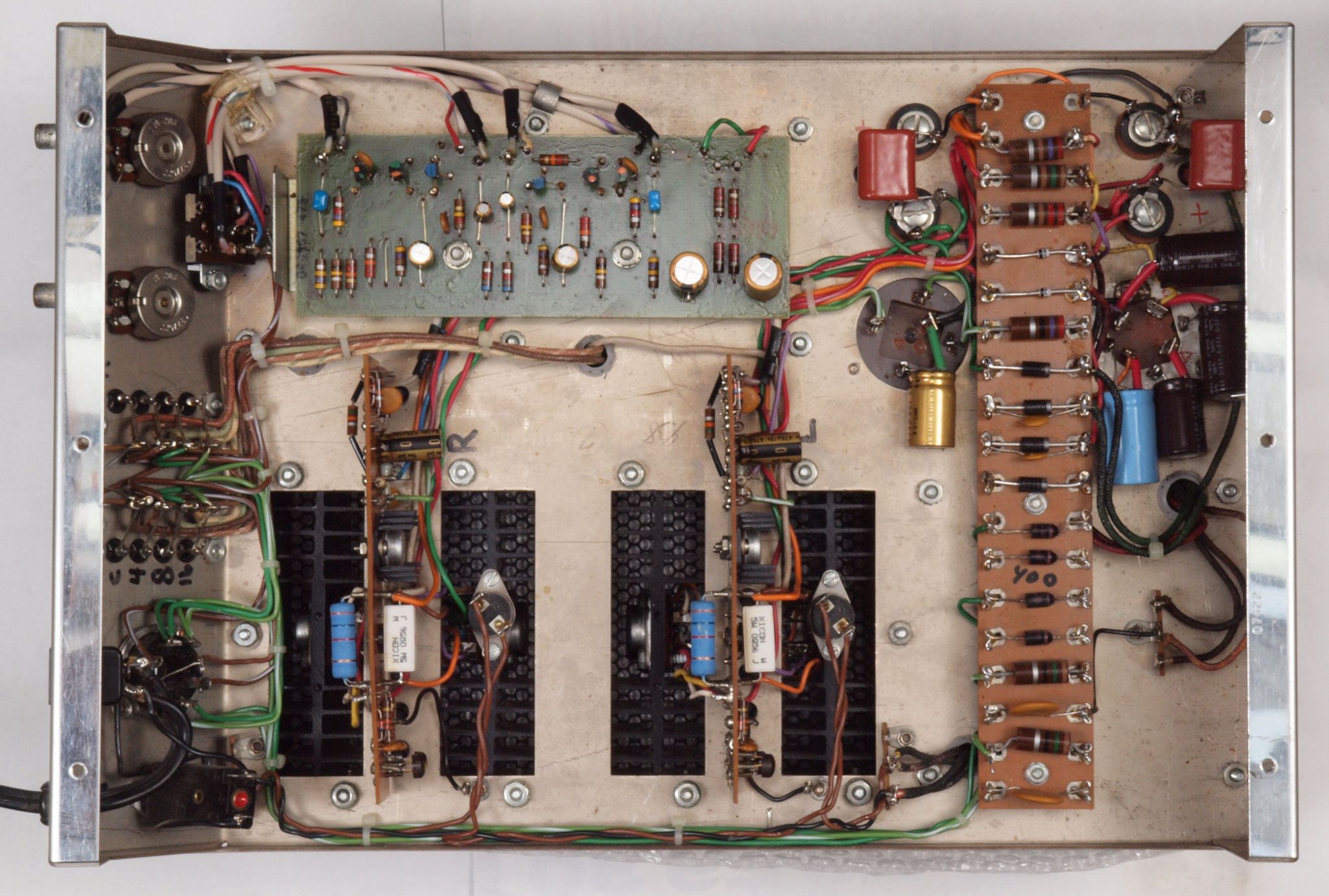 | A61. 点検中 電源ケーブル取り付け。ブロック電解コンデンサーがチュウブラ電解コンデンサーに交換されている。 | ||||||||||||||||||||||||||||