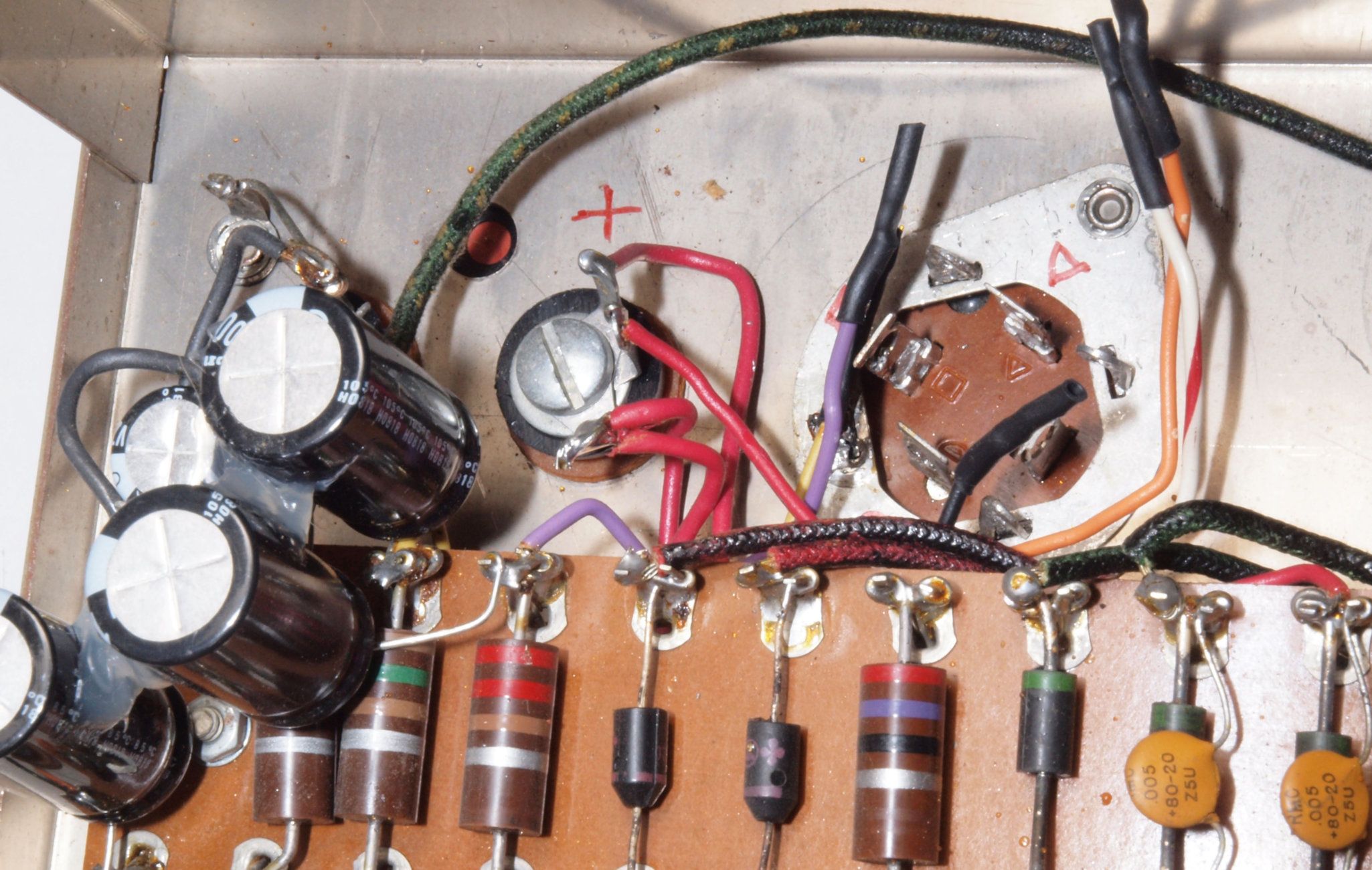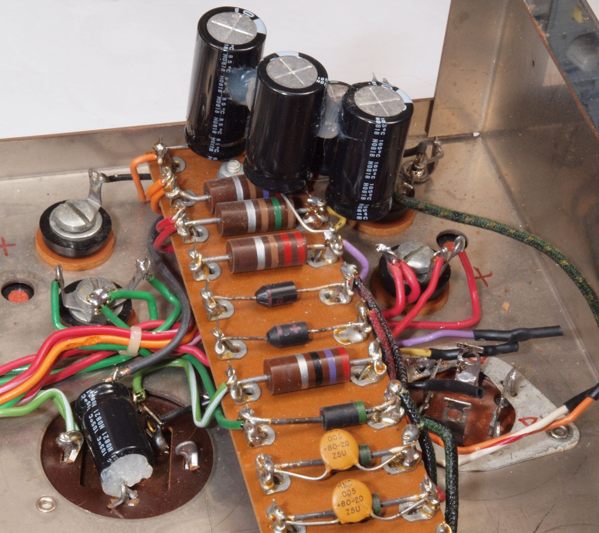 | A62. 点検中 電源ケーブル取り付け。ブロック電解コンデンサーがチュウブラ電解コンデンサーに交換されている2。 | ||||||||||||||||||||||||||||