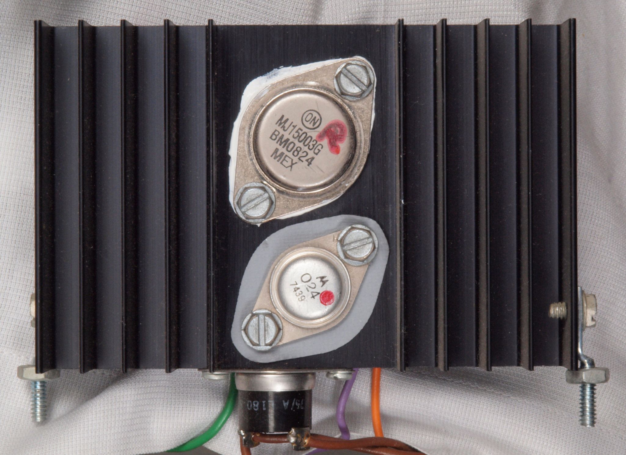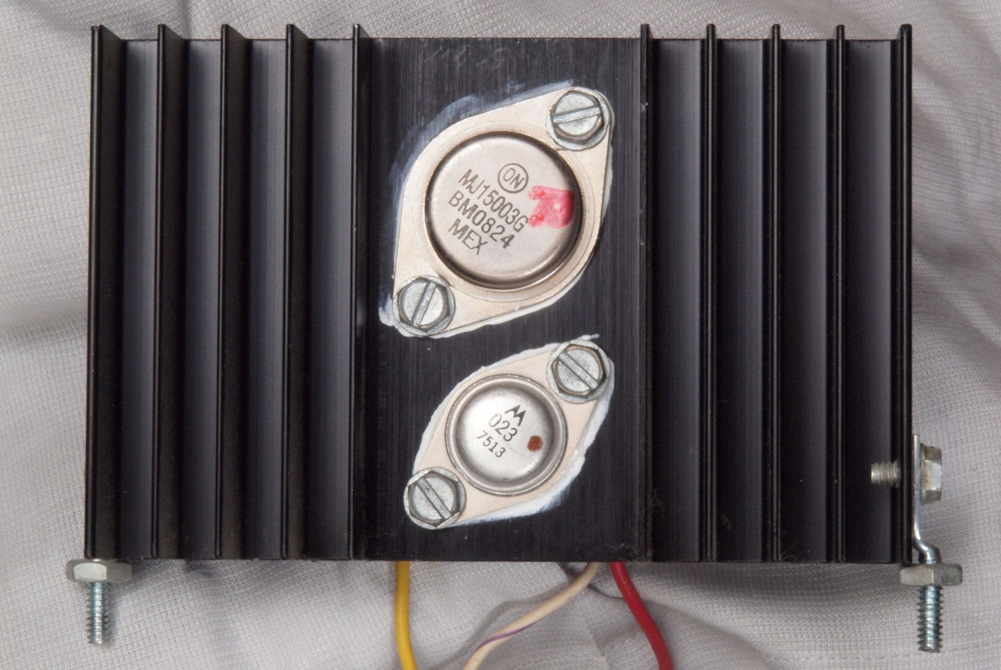 | C61. 修理(点検)中 右側+側終段放熱器。放熱を良くする為に終段TR(トランジスター)は直付け。 | ||||||||||||||||||||||||||||