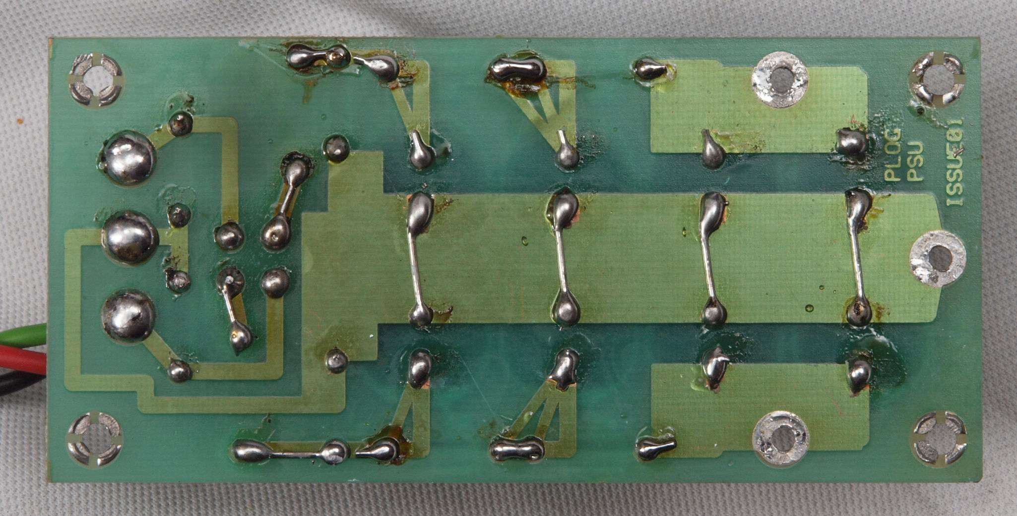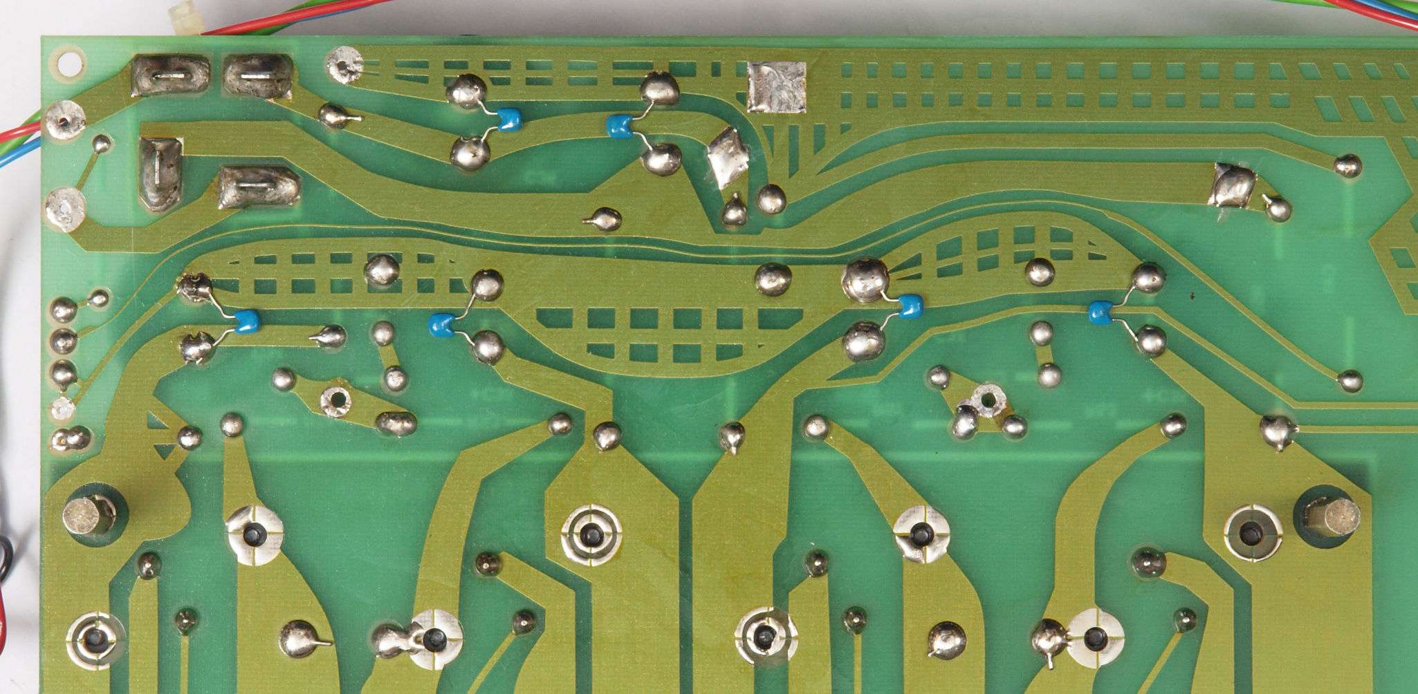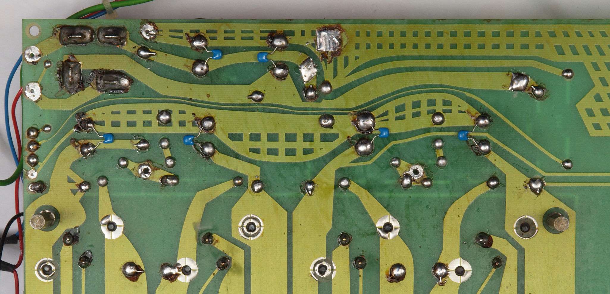 | C44. 修理(半田補正)後 整流基板裏。 半田を全部やり直す。セラミックコンデンサー6個追加。 | ||||||||||||||||||||