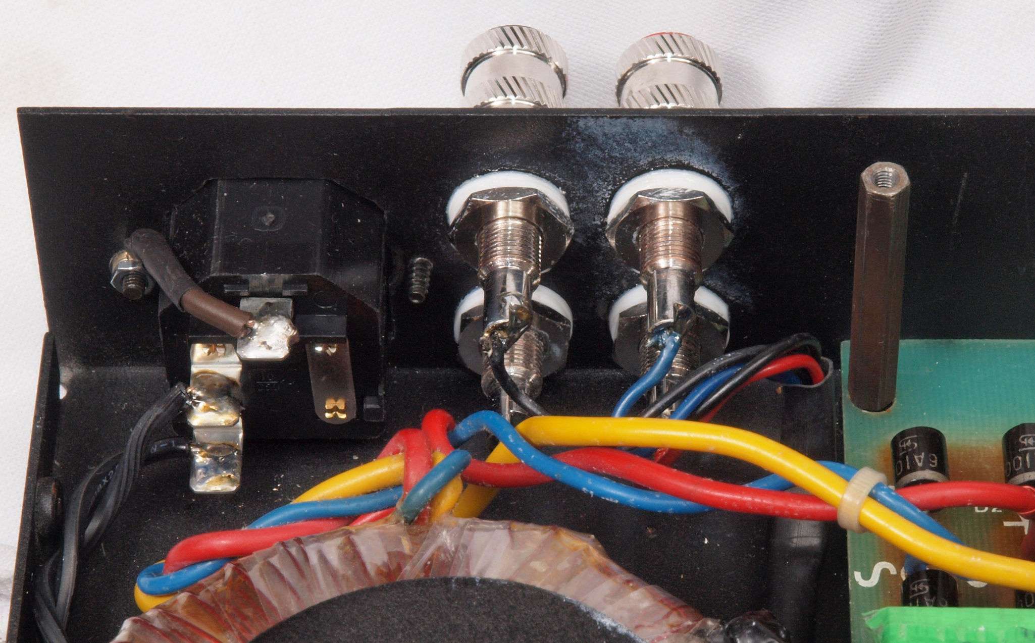 CC4. 修理後 SP接続端子交換、端子の穴は横向き。 電源コードをインレットソケットに交換(仮付け)。