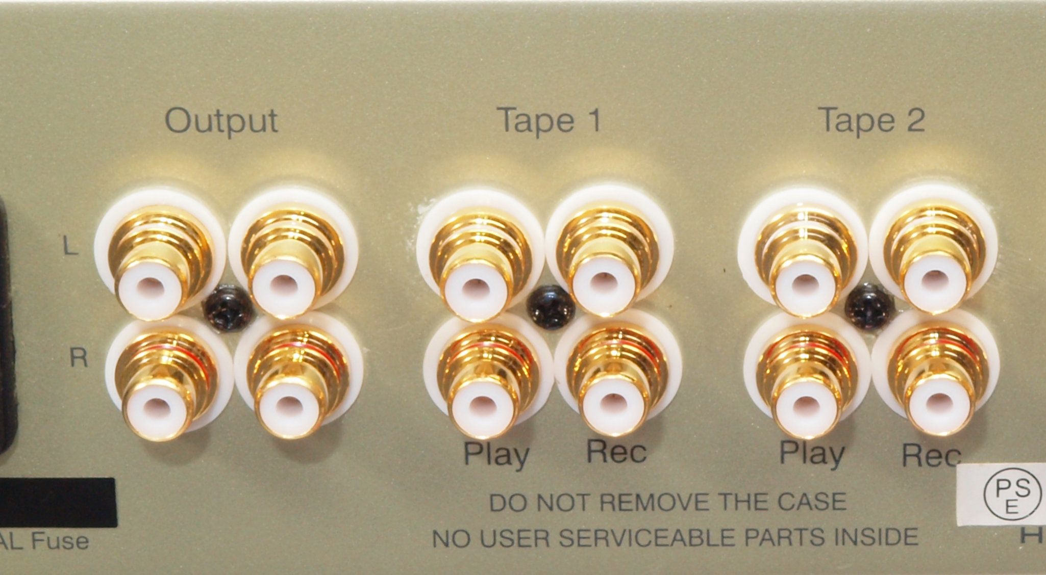 A42. 点検中 出力RCA端子郡。 テフロン絶縁RCA端子に交換。