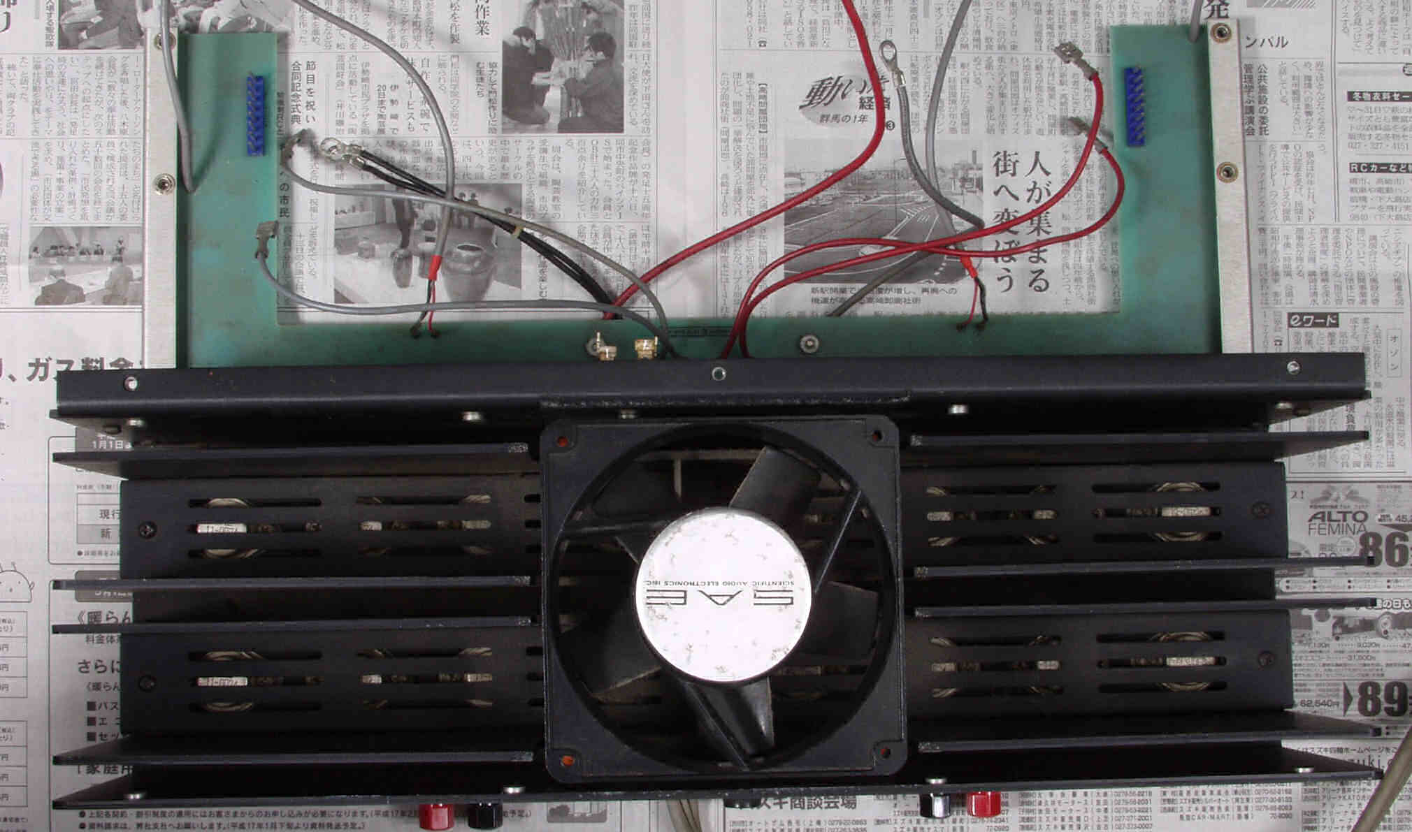 | CF1. 再修理 測定中電源が切れた、原因は安全サーモが経年変化の劣化で不良 再度終段基板をはずし、新サーモを増設する |