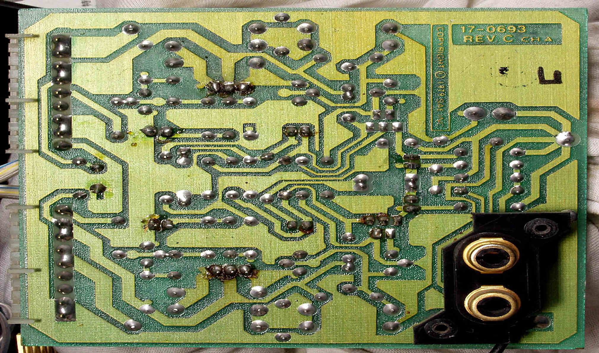 C3A1. 修理前 R側終段基板 ハンダが雑、ひげが出ている