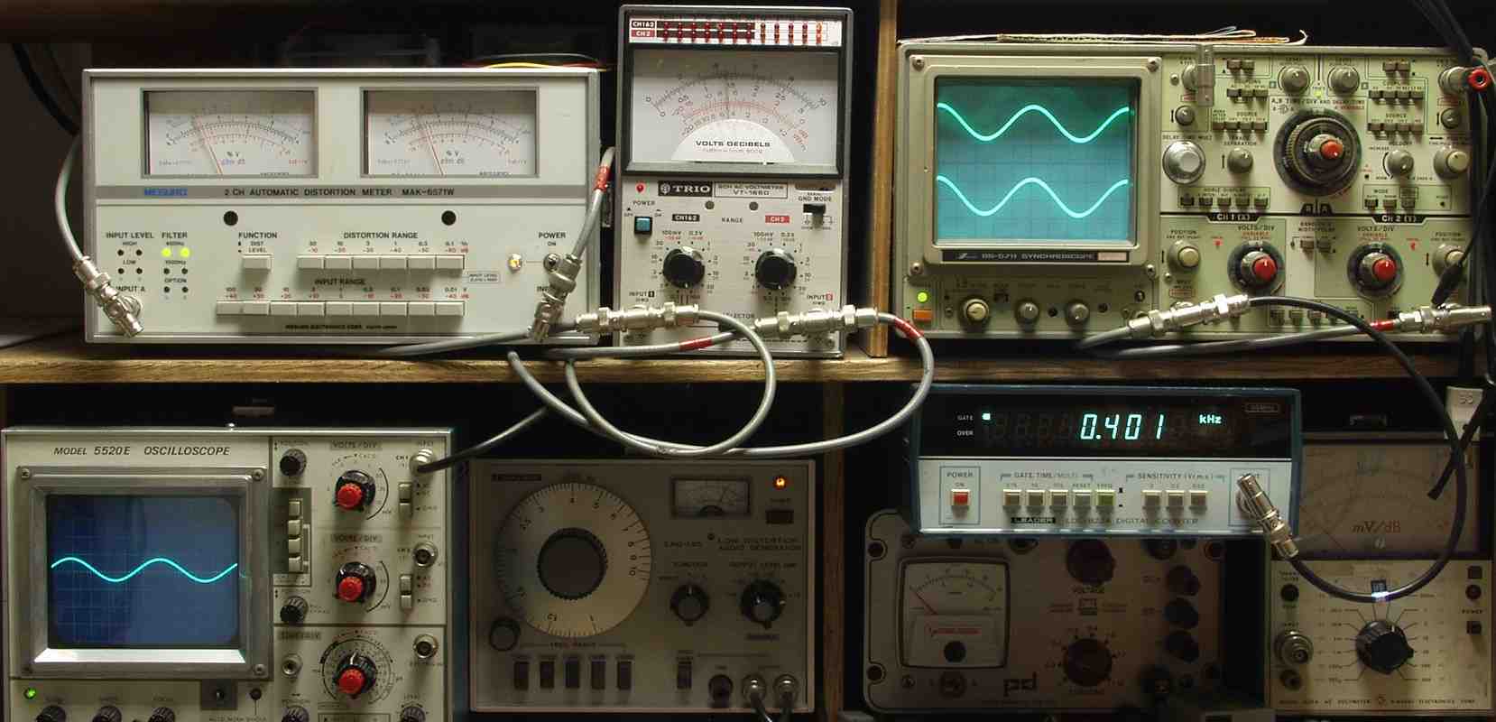 下左オーディオ発振器より400HZ・1KHZの信号を出す(歪み率=約0.003%)