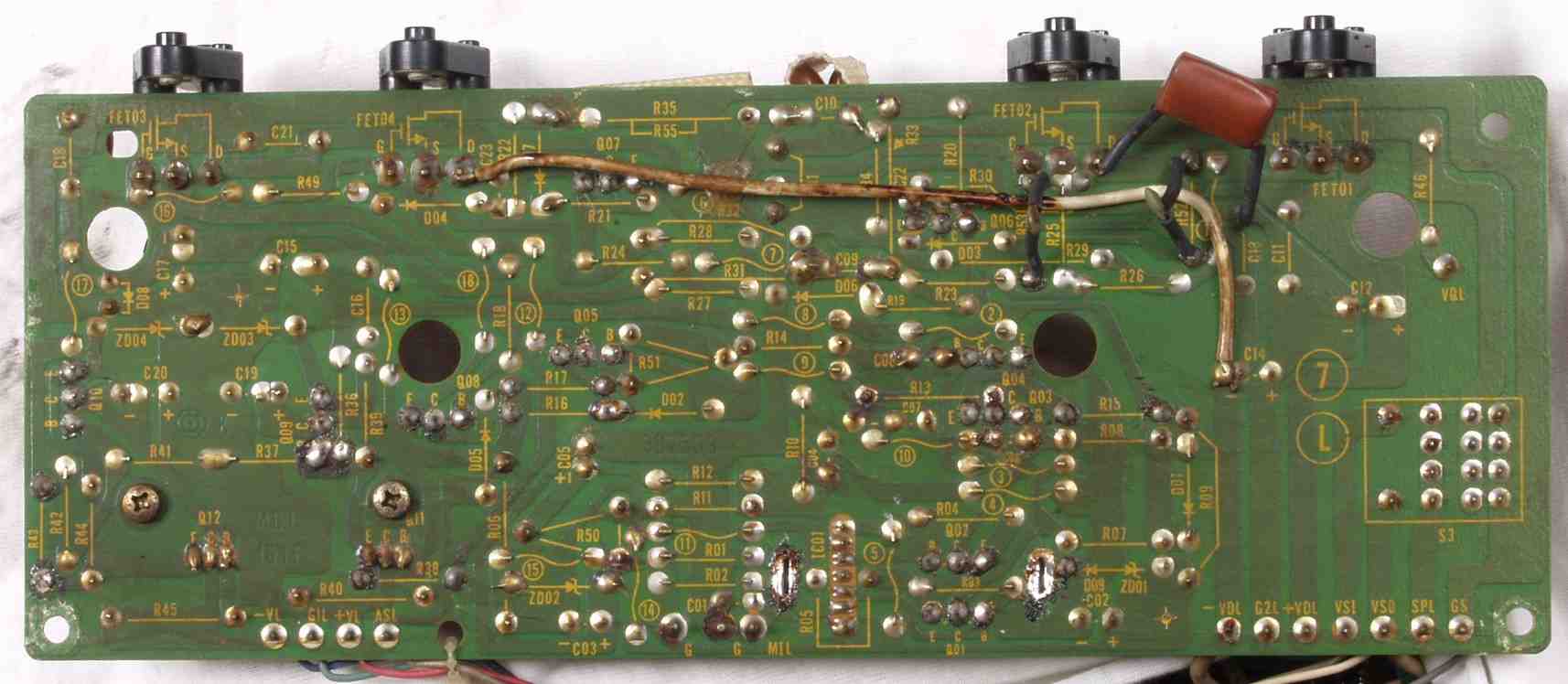 | C2D. 修理(半田補正)後 Rドライブ基板裏 全ての半田をやり修す |
