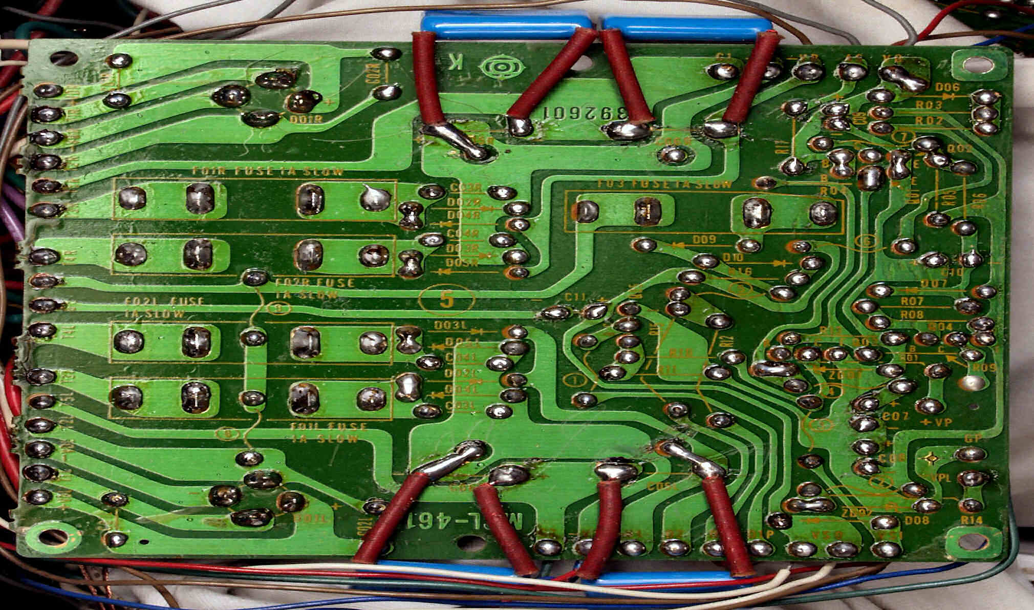 C4D. 修理(半田補正)後 電源基盤裏 全ての半田をやり修す