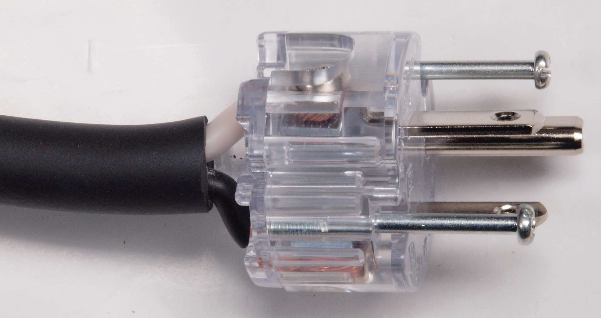 | C9E. 完成 3Pプラグにケーブル取り付。 奥までしっかり芯線が入っている。 |