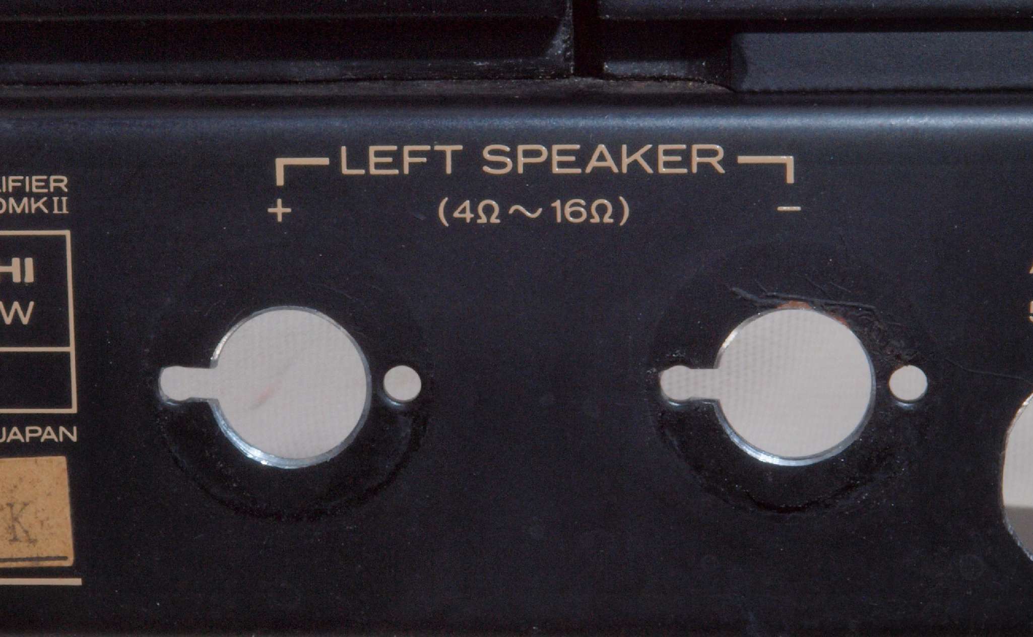 | 注意 このAMPはアースラインが浮いています。 AMPのシャーシにSPの線(アース側)やプリAMPのアースもも接続してはいけません。 RL−SPのアース線も接続(共通)してもいけません、+−の撚りのあるのも使用出来ません。 又、DC(directconnection)入力が可能ですが、絶対に使用しないこと=ここ参照 |