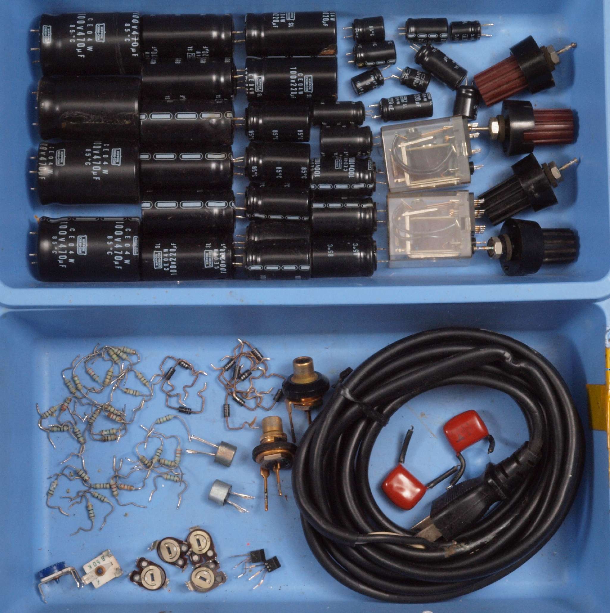 | A41. 点検中 電解コンデンサー外観比較、100μ/100V |