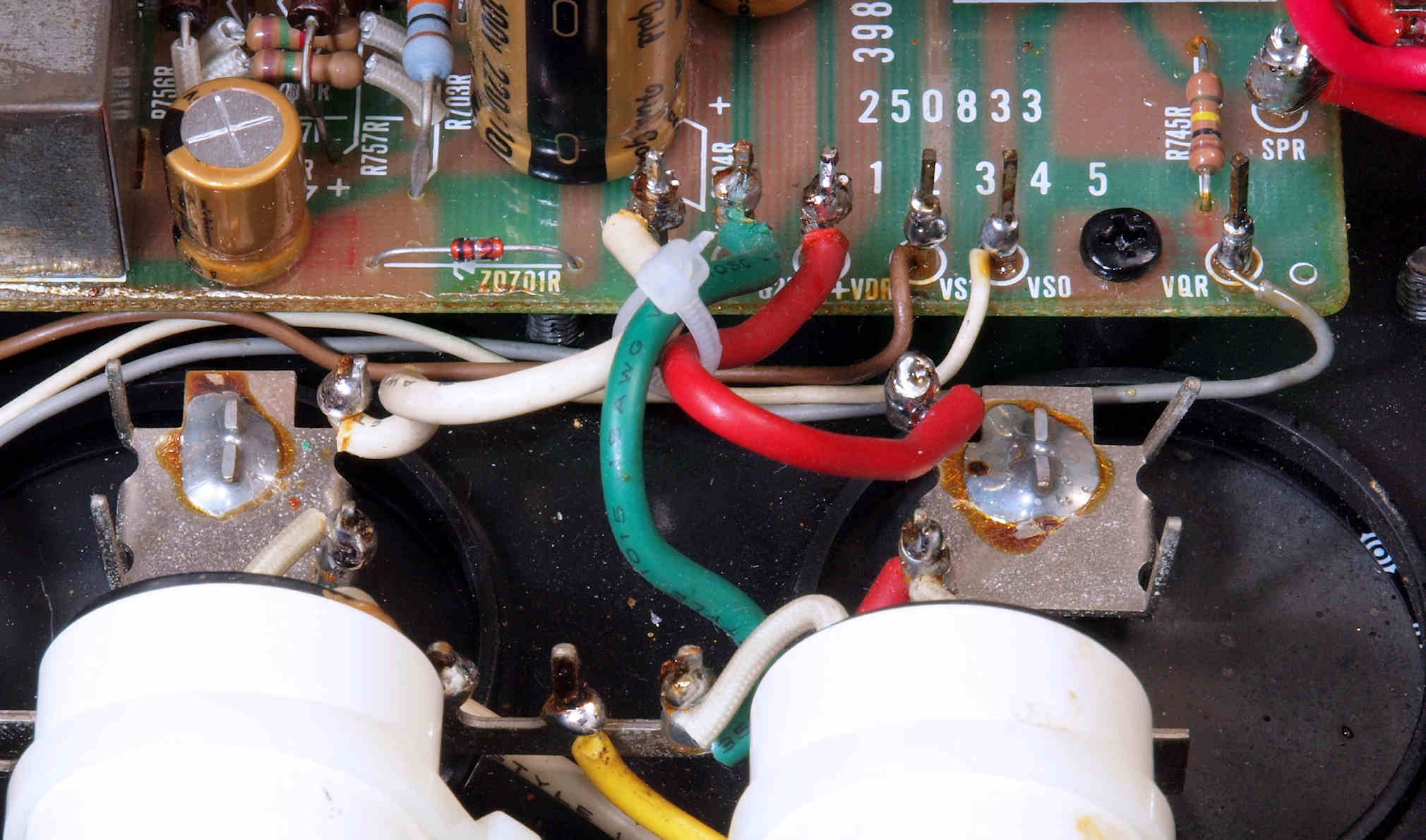 | C67. 修理(半田補正)後 RCA端子基板裏 半田を全部やり直す フイルムコンデンサー2個交換+2個増設 |