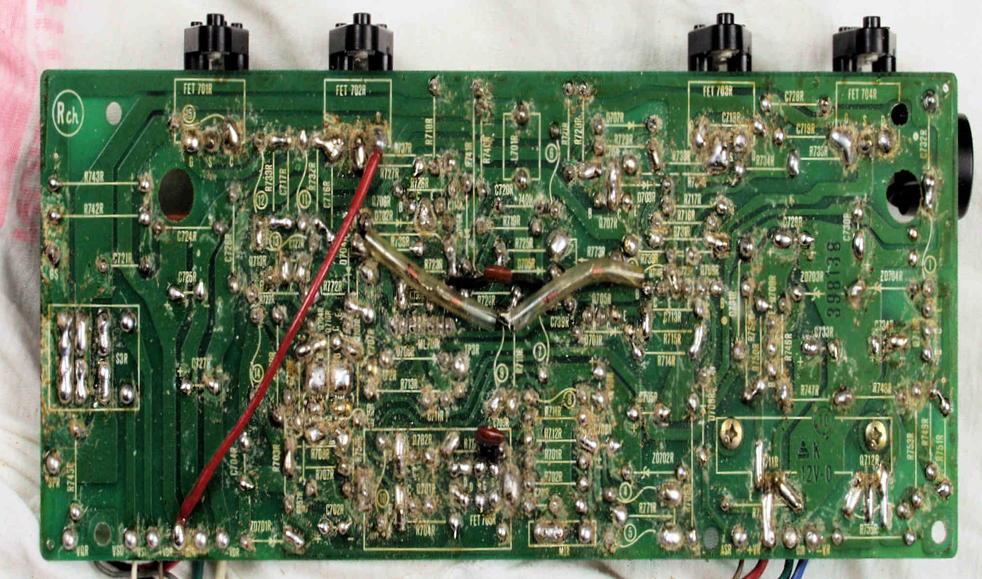 | C14. 修理(半田補正)後 R側ドライブ基板裏 半田を全部やり直す 普通はこれで完成 |